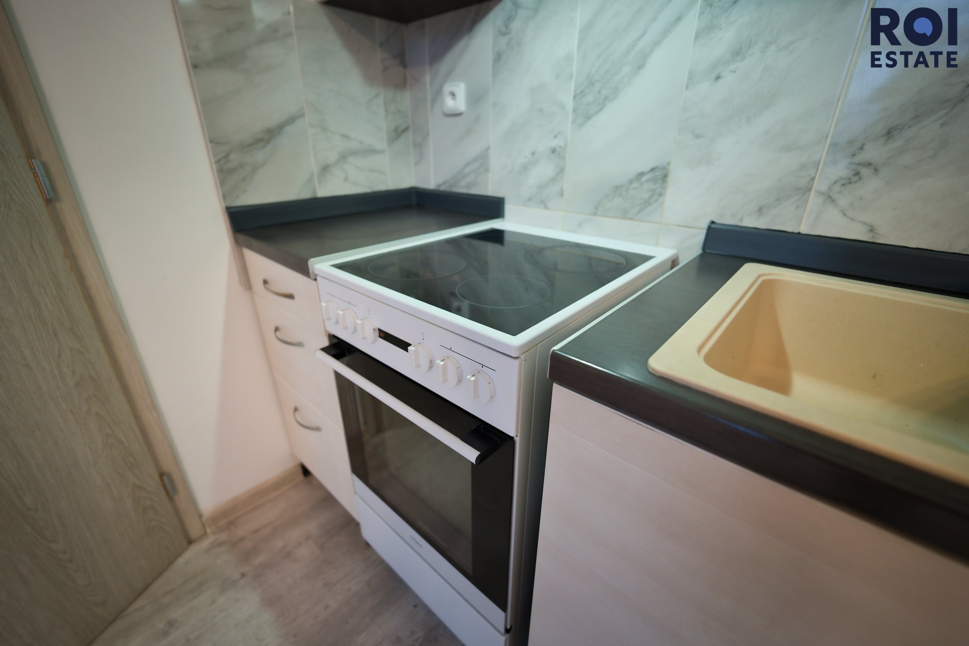 Byt nabízí prostorný obývací pokoj s kuchyňským koutem, samostatnou ložnici, koupelnu s vanou a samostatné WC. Kuchyňská linka je vybavena základními spotřebiči (sporák, trouba, lednice). Koupelna disponuje vanou, umyvadlem a pračkou.
