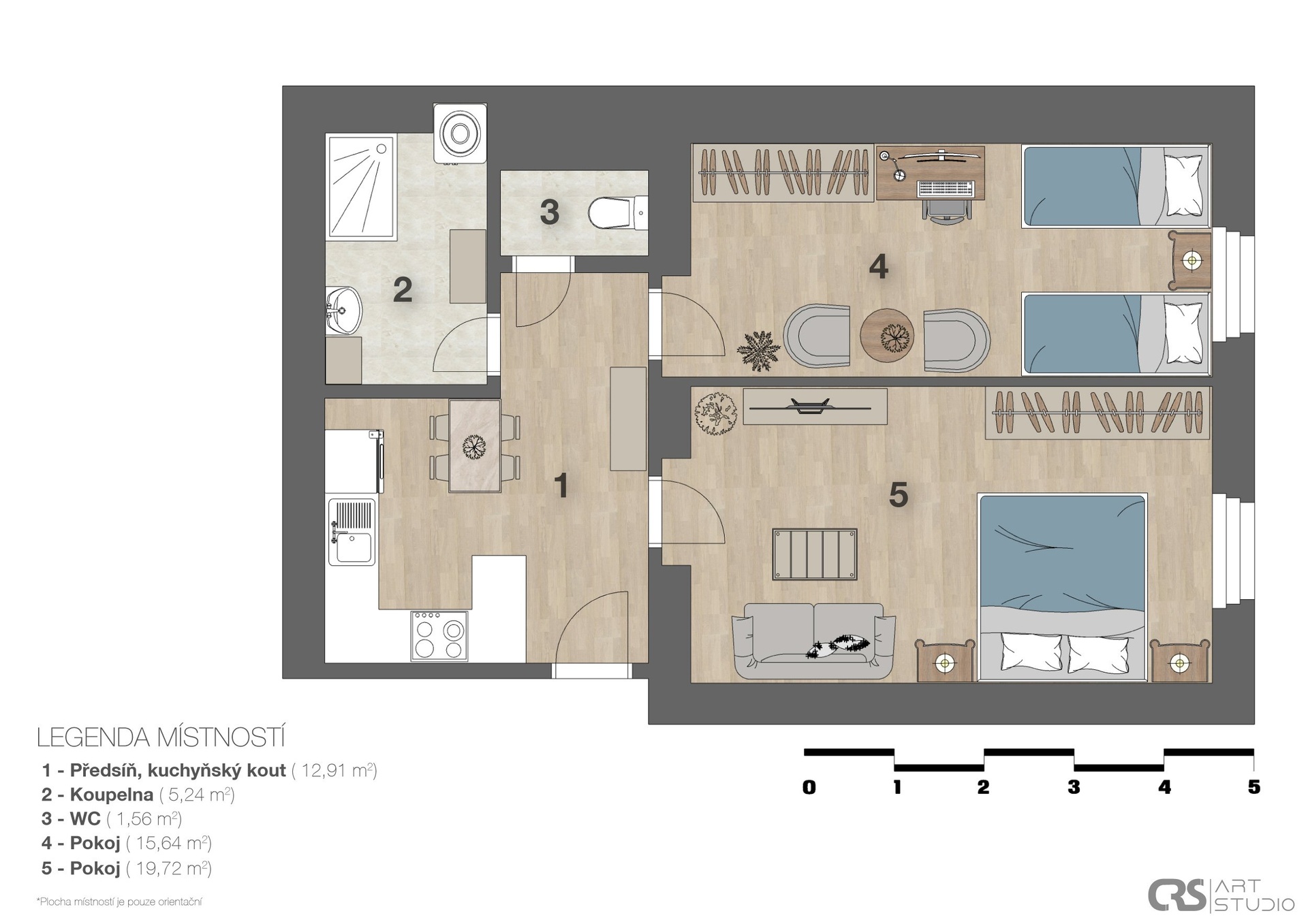 - Celková podlahová plocha: 55 m²
