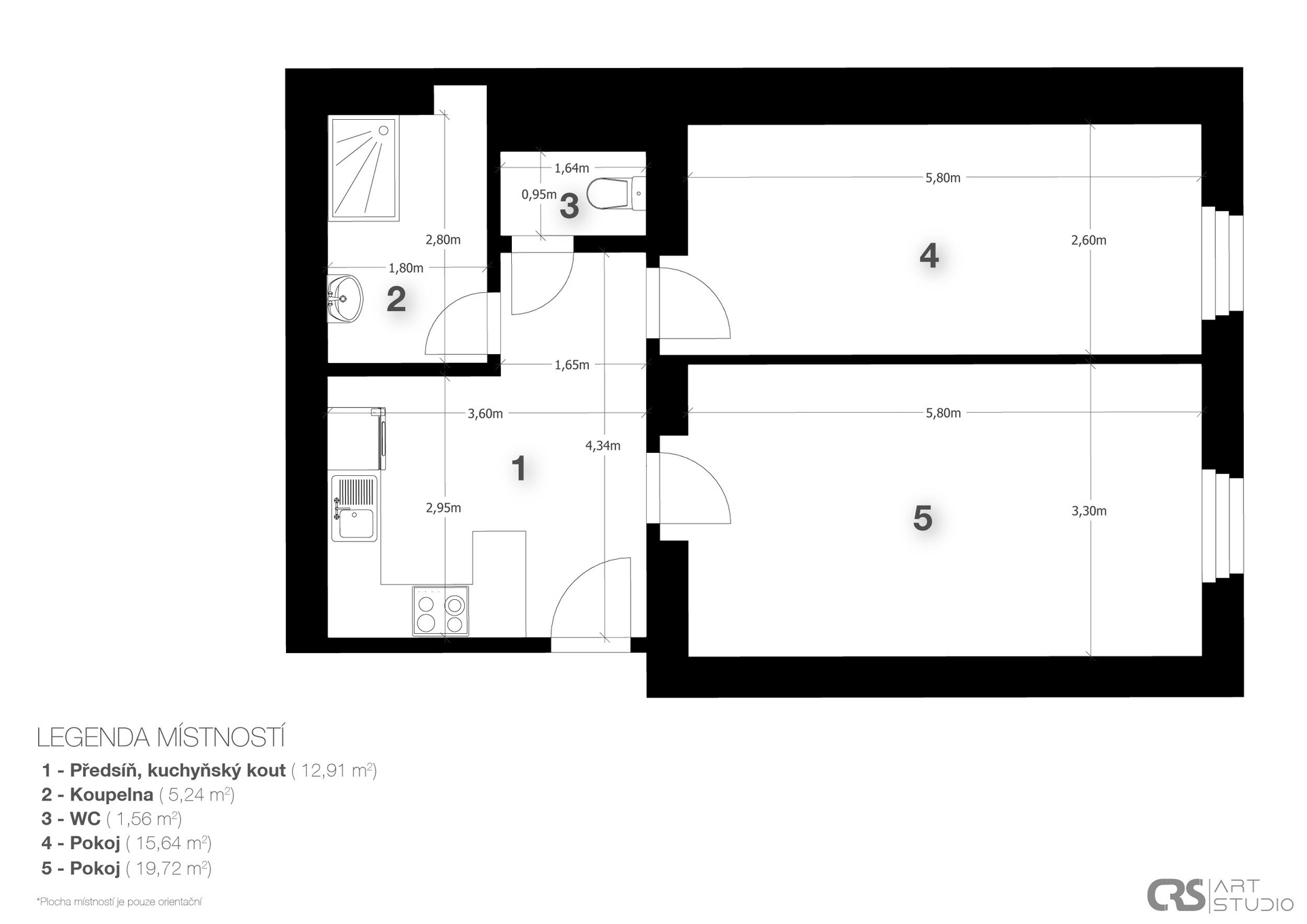 - Dispozice bytu: 2+kk
