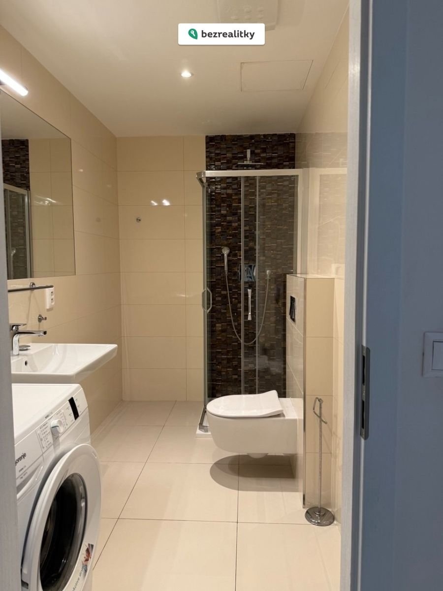 Interiér je kompletně vybaven a připraven k okamžitému užívání či dalšímu pronájmu. Moderní kuchyňská linka disponuje všemi spotřebiči, obytný prostor je zařízen s důrazem na funkčnost i estetiku. Dvě koupelny poskytují maximální pohodlí jak pro vlastní bydlení, tak pro nájemní využití.