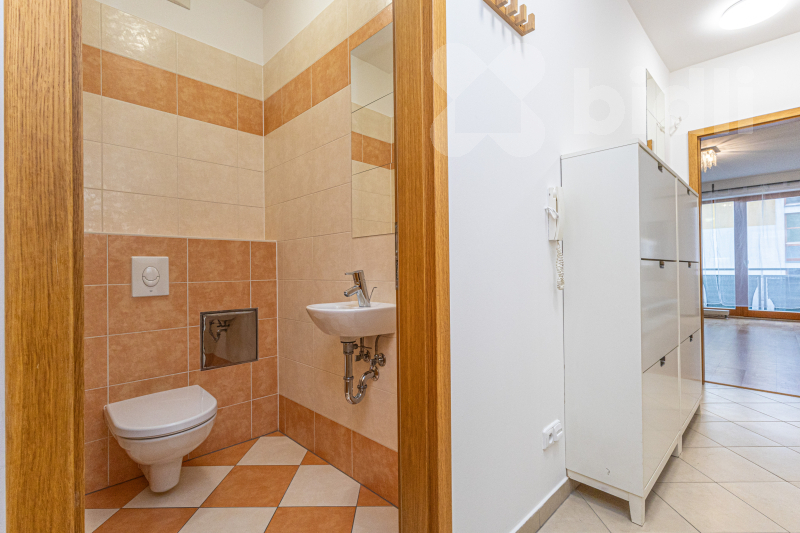 Interiér působí vzdušným a promyšleným dojmem. Každý den zde zpříjemňuje nadstandard v podobě dvou samostatných toalet, praktický detail, který ocení nejen pár, ale i návštěvy. Obytný prostor přirozeně navazuje na balkon (2 m2) orientovaný do klidného prostředí, ideální pro ranní kávu, večerní sklenku vína nebo chvíle relaxu po práci.