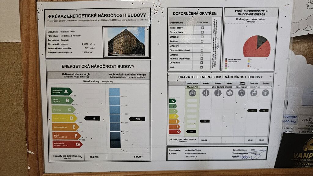 - Energetická náročnost budovy: D - Méně úsporná