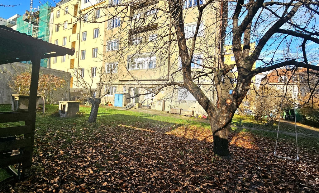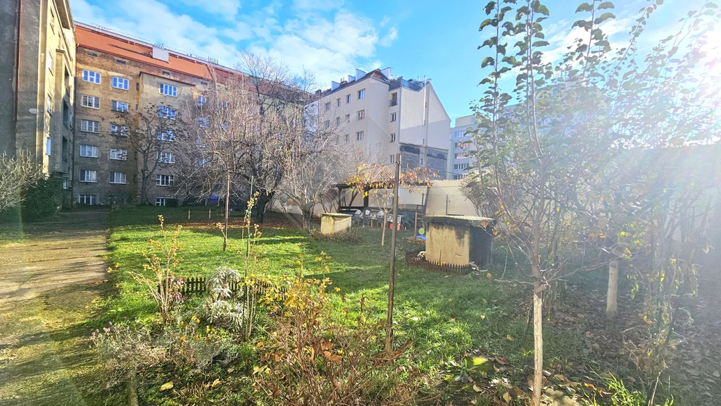 Za domem se nachází soukromá zahrada určená výhradně pro obyvatele domu, která nabízí klidné a příjemné posezení.