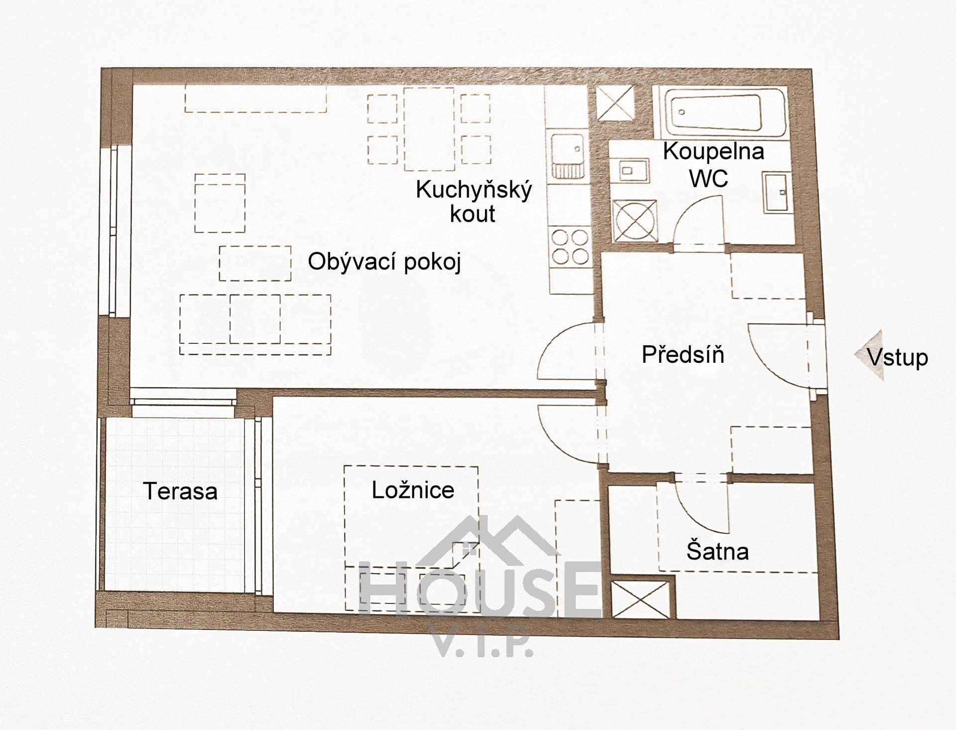 - Dispozice bytu: 2+kk