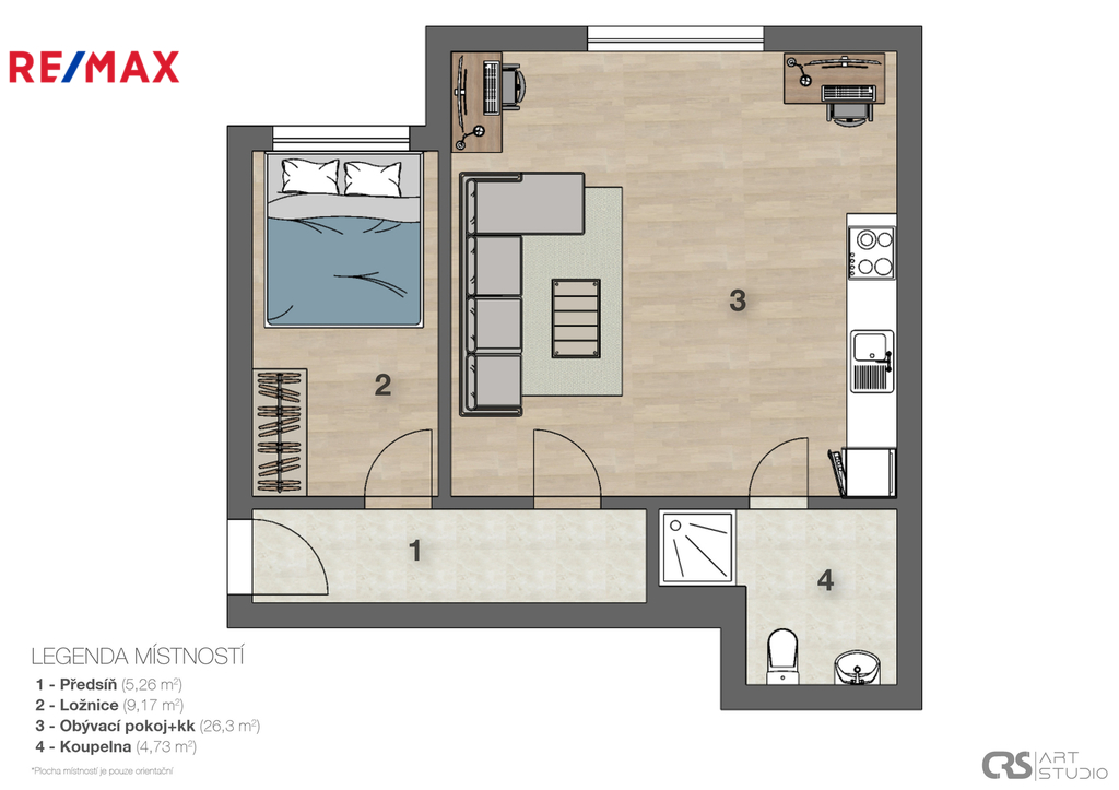 | Dispozice/podlahová plocha: | 2+kk/53 m² |