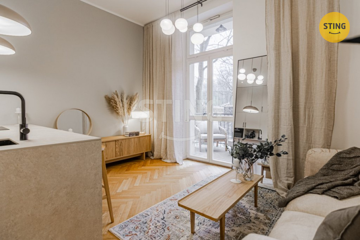 Byt prošel zdařilou rekonstrukcí s důrazem na funkčnost a nadčasový design. Velkorysý obytný prostor je přirozeně propojen barovým ostrůvkem s kuchyňským koutem.