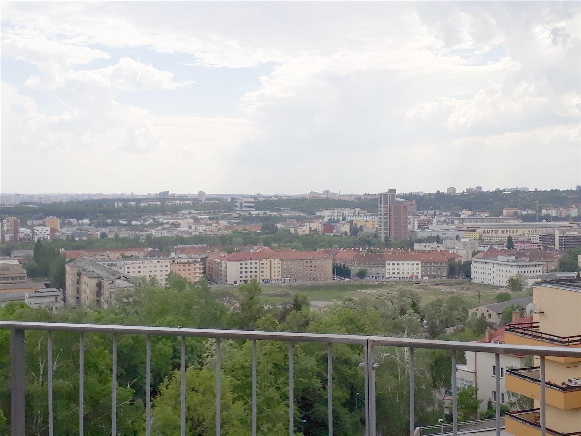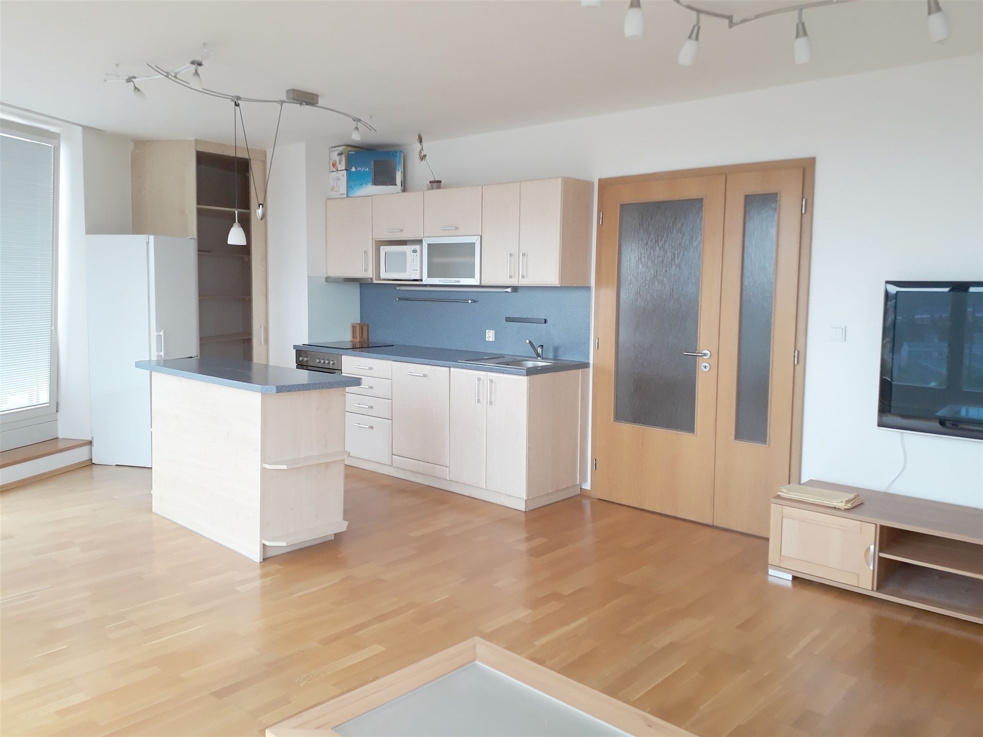 Dominantou bytu je světlý obývací pokoj s kuchyňským koutem, odkud se otevírá jedinečný panoramatický výhled na město. Kuchyň je plně vybavena spotřebiči – lednice, myčka, elektrická trouba a varná deska. V obývacím pokoji je instalována velmi tichá klimatizace zajišťující maximální komfort.