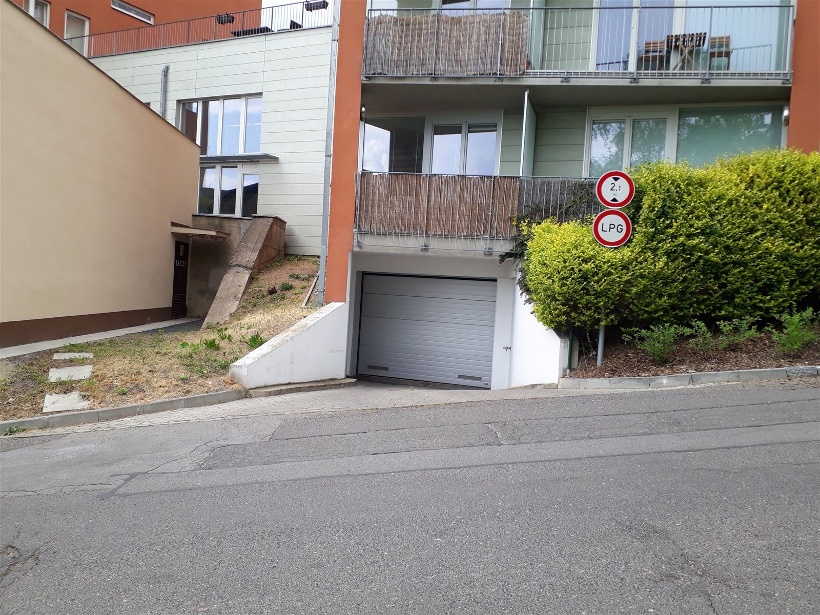 Na terase je položena venkovní dlažba s odtokovým kanálkem, ideální pro posezení či relaxaci. K bytu náleží garážové stání v suterénu domu s vjezdem na dálkové ovládání. Obyvatelům je dále k dispozici kočárkárna a kolárna.