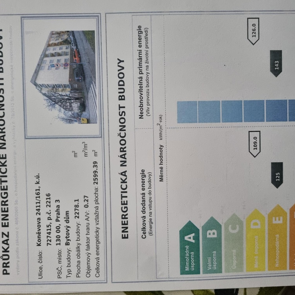 - Ukazatel energetické náročnosti budovy: 125 kWh/m²