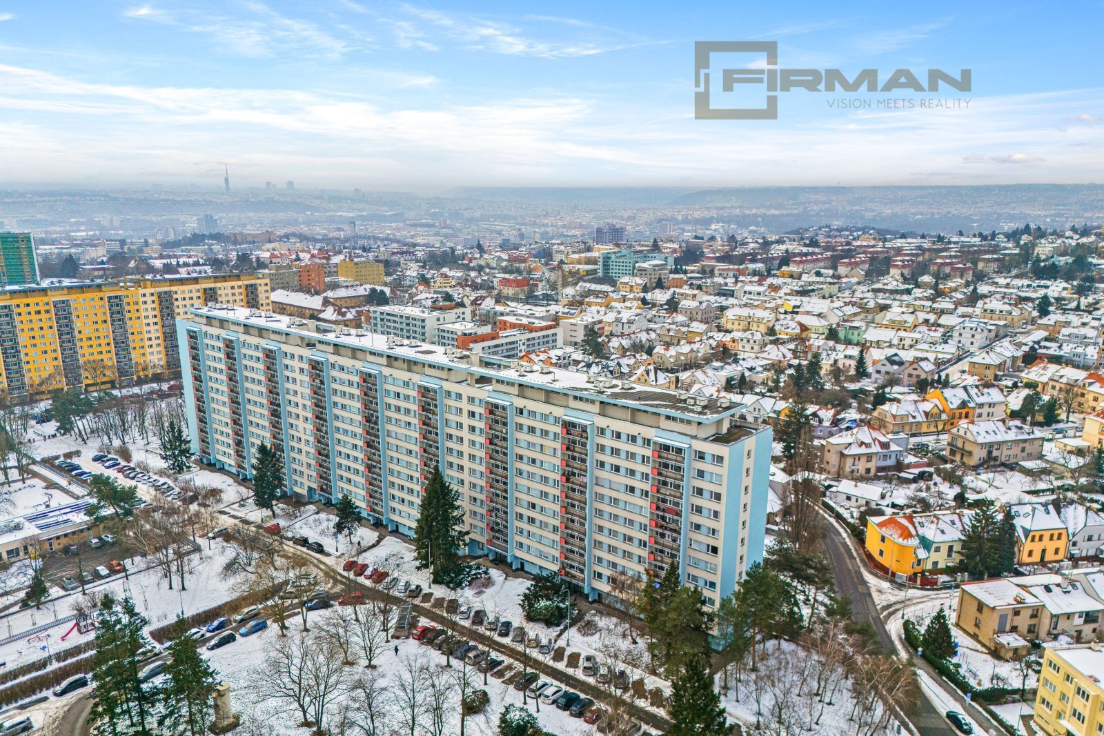 Dispozice bytu je praktická a zároveň otevřená možnostem. Je zde samostatná ložnice a obývací pokoj s francouzským oknem, díky kterému je celý prostor krásně prosvětlený, působí vzdušně a otevírá se příjemnému výhledu do okolní zeleně, což dodává bytu klidnou a harmonickou atmosféru. Byt je určen k rekonstrukci, ale zároveň je ihned obyvatelný – můžete se nastěhovat a postupně si ho dotvořit přesně podle svých představ. K bytu náleží sklepní kóje / komora o velikosti přibližně 3 m², která se nachází v 9. patře.