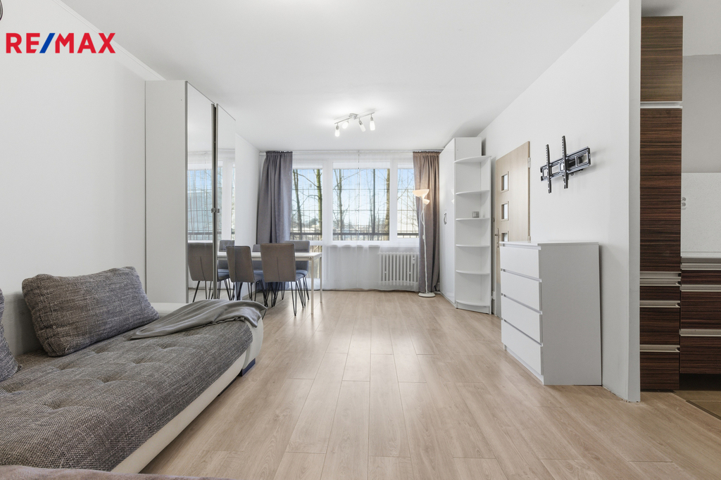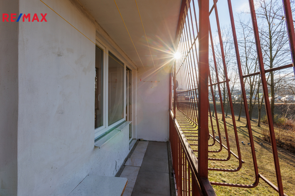 Byt se sice nachází v přízemí, ale díky umístění v posledním panelovém domě v zástavbě, mají okna i lodžie volný výhled a byt není stíněn okolními stavbami.