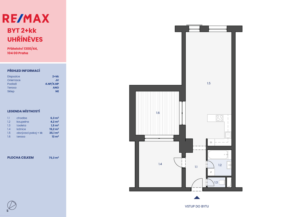 | Dispozice/podlahová plocha: | 2+kk/75 m² |