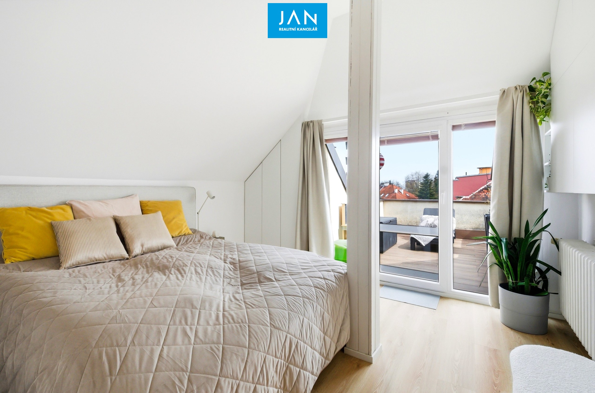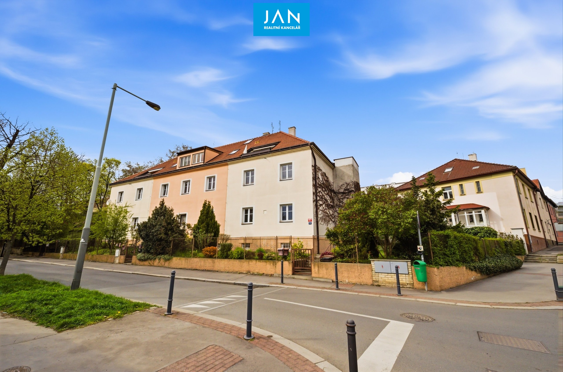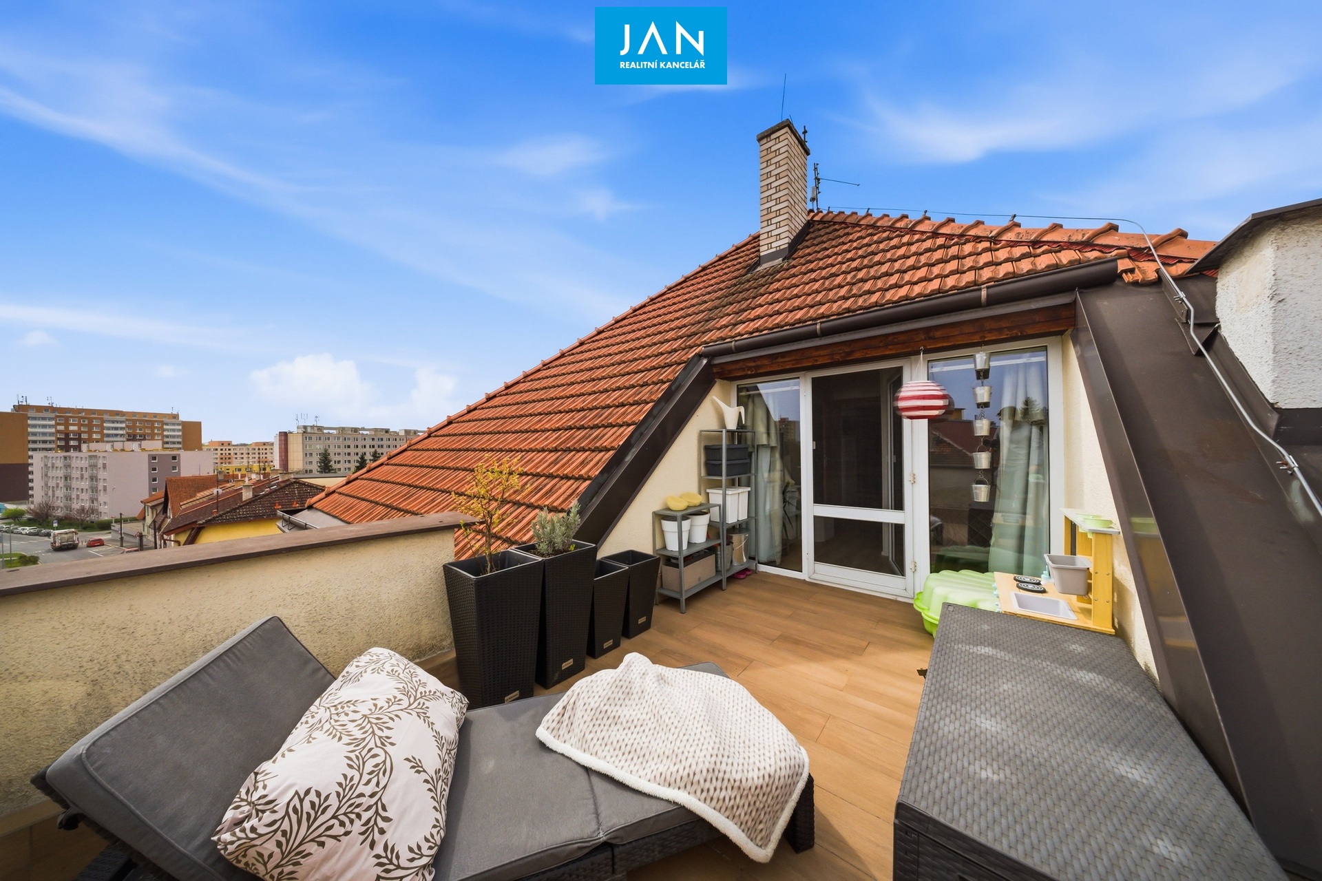 Byt se nachází ve 2. patře cihlového domu bez výtahu – odměnou je však právě klid, soukromí a zmíněné terasy, které dělají z tohoto bytu opravdu příjemné místo k životu.