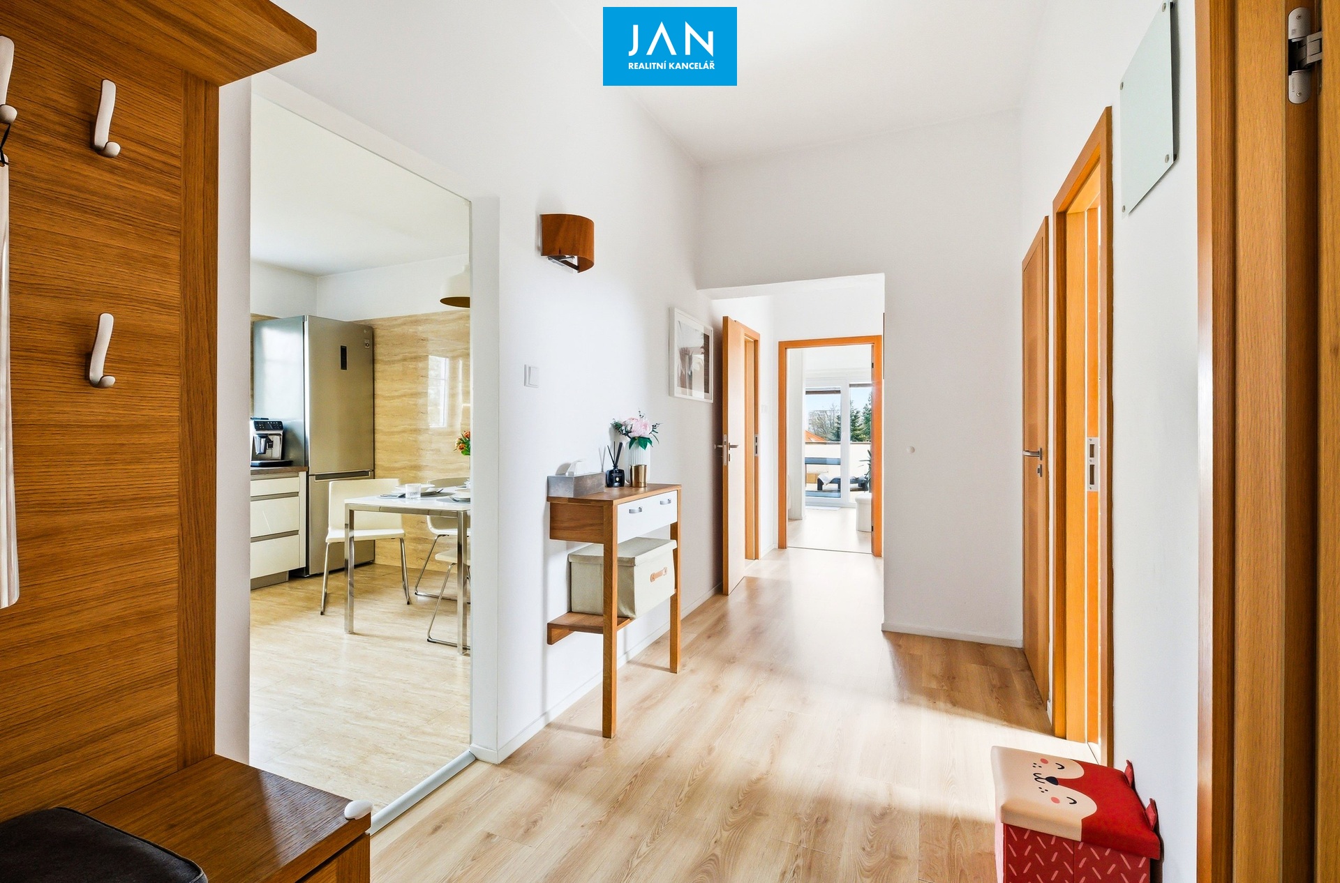 Dispozice 87 m² zahrnuje světlý obývací pokoj, dále další dva neprůchozí pokoje, samostatnou kuchyň a praktickou šatnu, kterou ocení každý, kdo nechce řešit úložné prostory kompromisy, koupelnu a samostatnou toaletu.