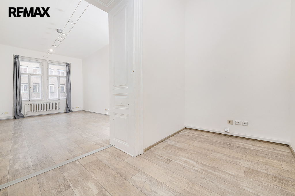 Díky velkorysé ploše a vysokým stropům nabízí byt velmi zajímavý potenciál pro vznik reprezentativního městského bydlení v atraktivní části Prahy.