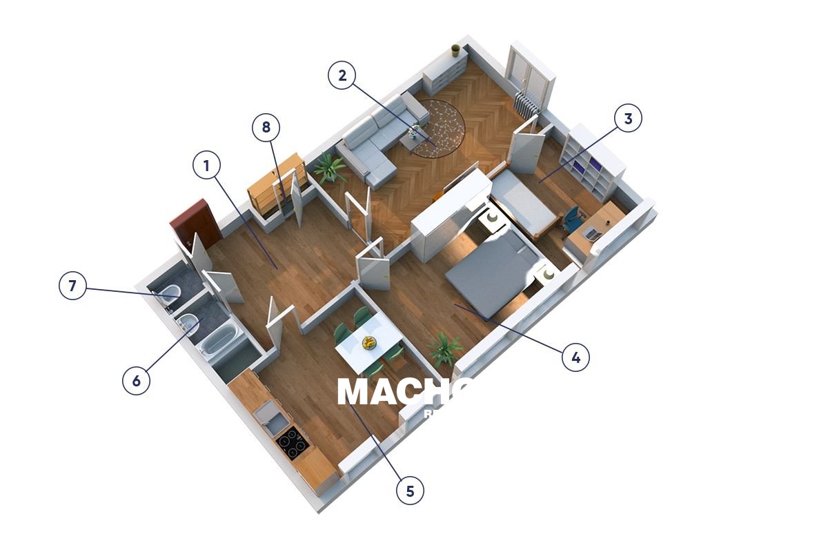 Současně je byt řešen jako 3+1, nicméně pro lepší představu o možnostech prostoru jsme připravili vizualizace, které ukazují, jak by bylo možné byt propojením obývacího pokoje s kuchyní upravit na moderní 3+kk.