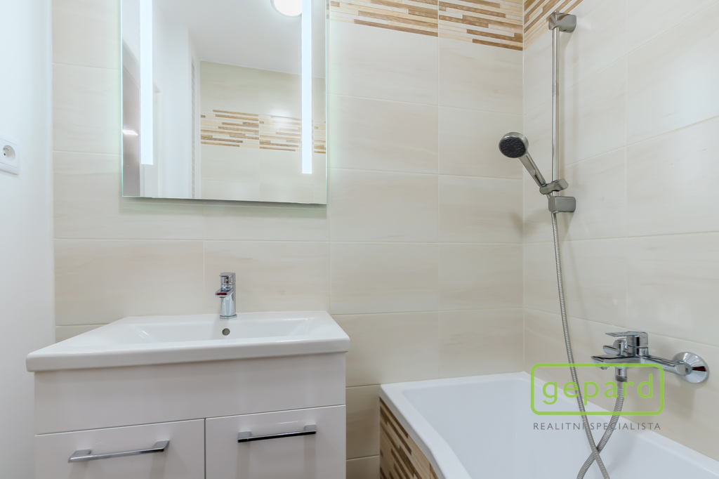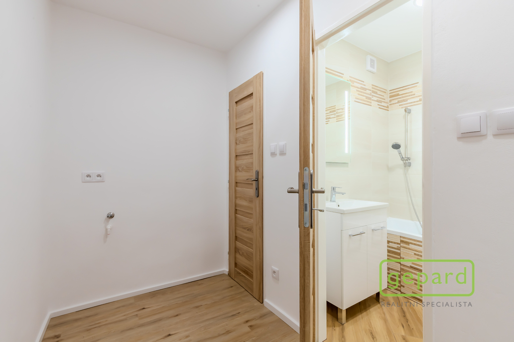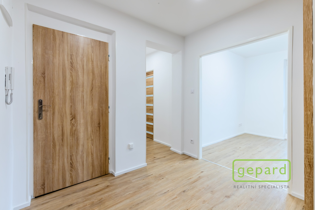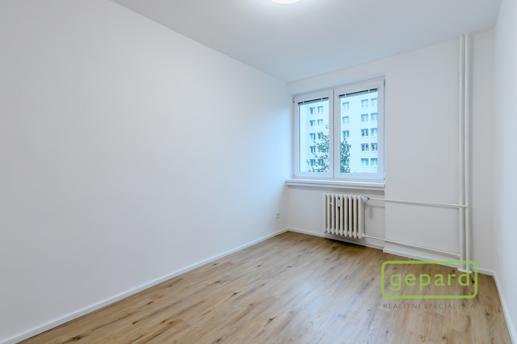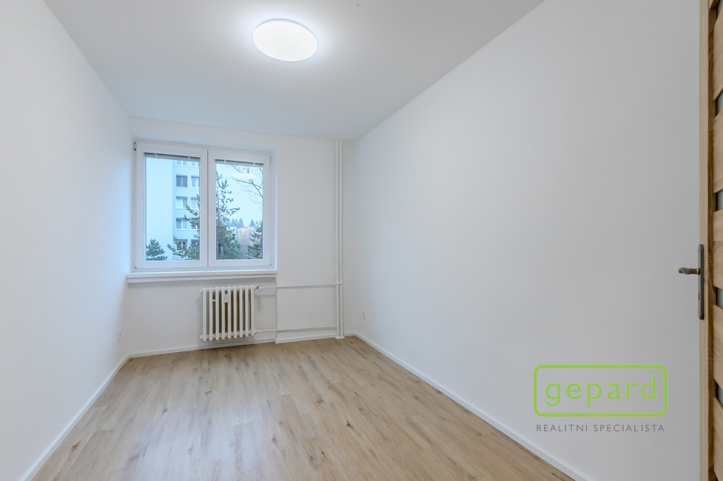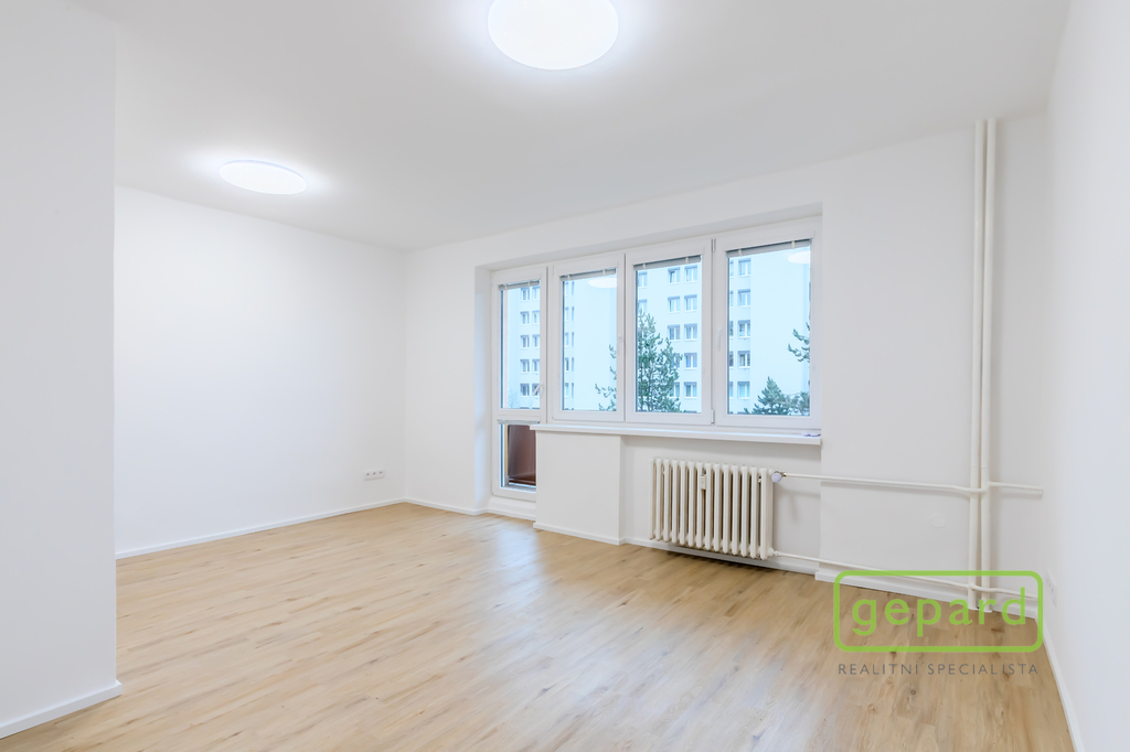 Interiér tvoří světlý obývací pokoj, samostatná kuchyně, dva neprůchozí pokoje, koupelna s vanou a samostatná toaleta. Příjemným benefitem je lodžie o velikosti 6 m², ideální pro ranní kávu či večerní odpočinek, a také sklepní kóje o velikosti 3 m², která poskytuje praktický úložný prostor.
