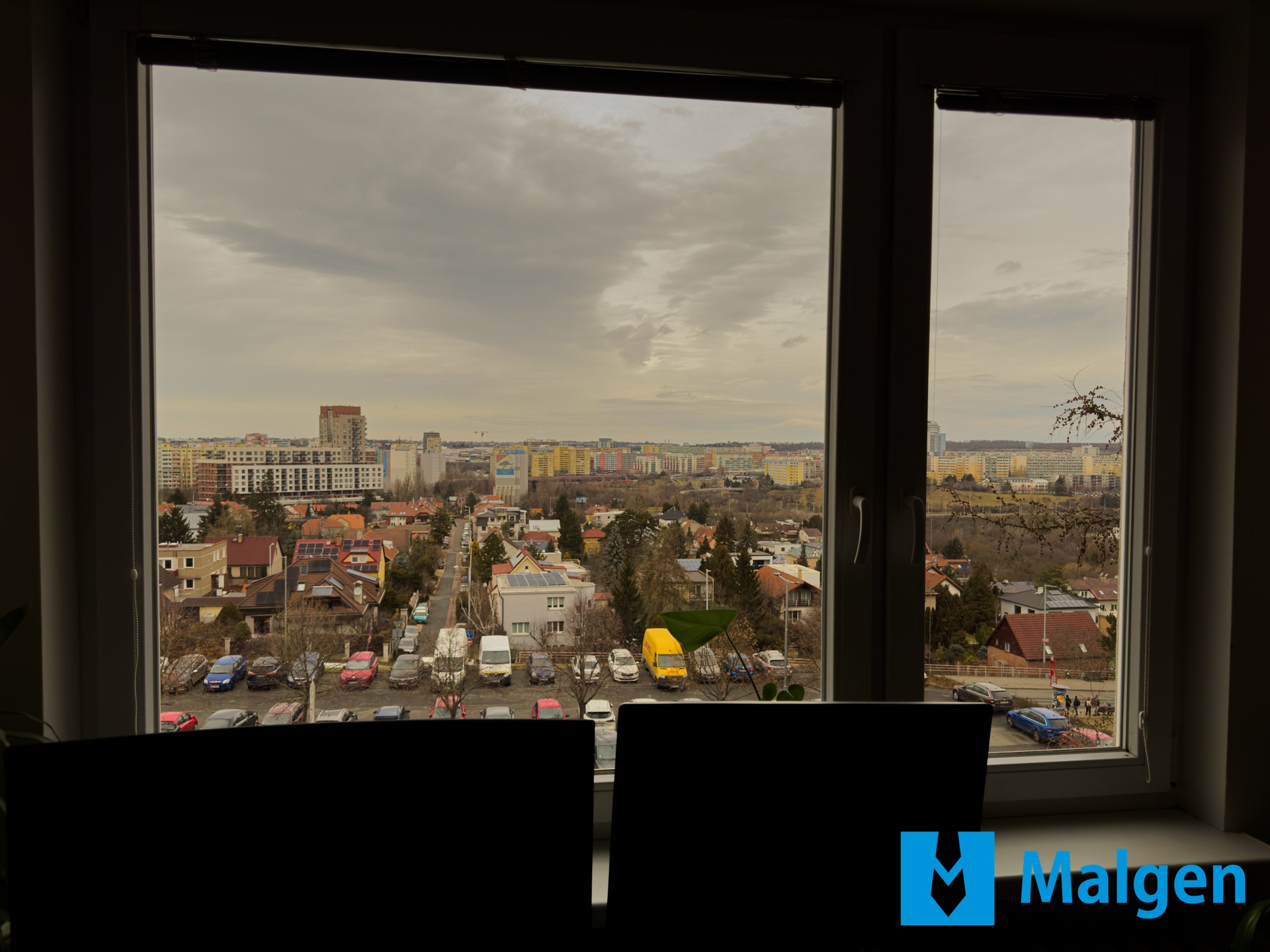 Byt se pyšní výhledem na obě strany: z jedné je otevřený prostor bez protějších budov. Z druhé strany klidné a zelené prostředí vnitrobloku s dětským hřištěm.