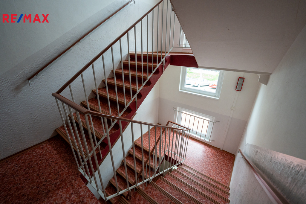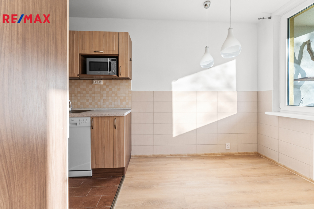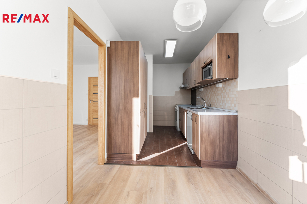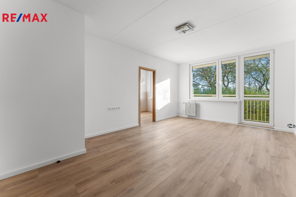 Dispozice bytu je prakticky řešená – ze vstupní chodby je přístup do všech místností: dvou neprůchozích pokojů, obývacího pokoje, kuchyně, koupelny, samostatné toalety a komory. Z obývacího pokoje je vstup na lodžii orientovanou směrem do zeleně. Ostatní místnosti jsou orientovány do ulice, kde je možnost parkování v rámci modré zóny.