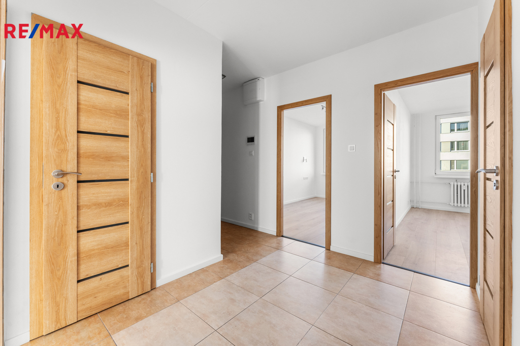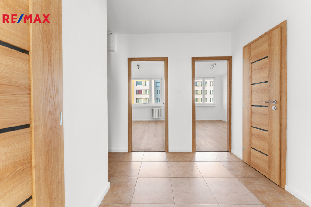 Byt je po dokončené celkové rekonstrukci, která zahrnovala nové podlahy, elektroinstalaci, interiérové dveře a zárubně, povrchové úpravy a olištování. Jádro a kuchyň na zakázku prošlo kompletní rekonstrukcí před 6 lety.