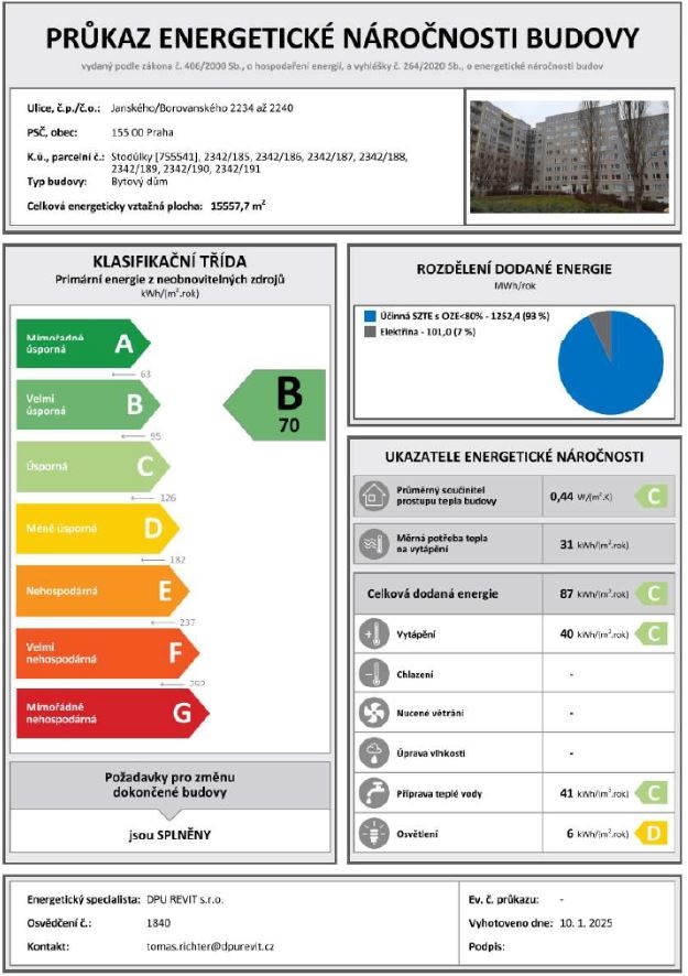 - Energetický ukazatel podle vyhlášky: č. 264/2020 Sb.