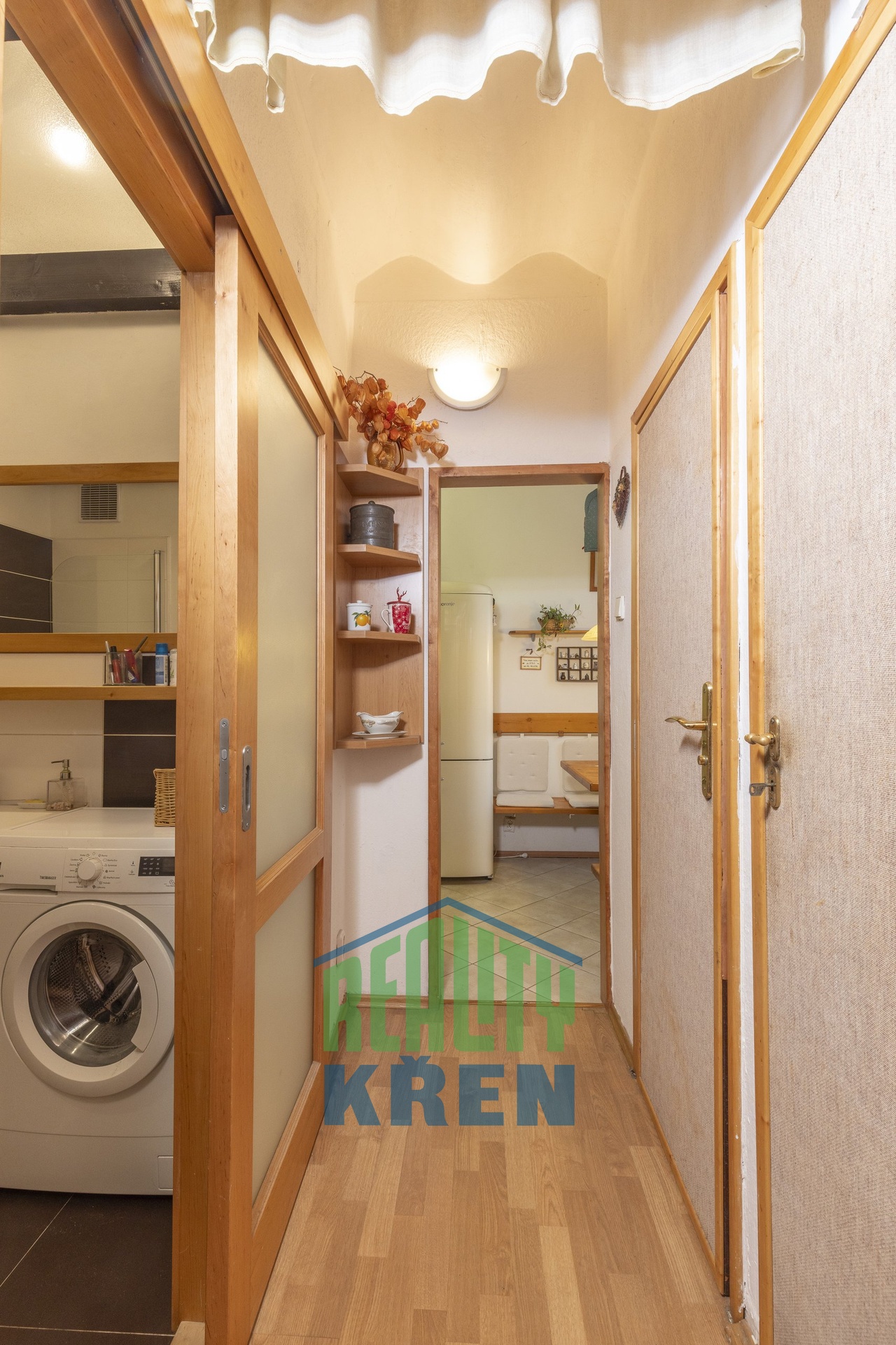 Vstupní hala s krbovými kamny 16 m2, obývací pokoj se sektorovým nábytkem 24 m2 a vstupem na lodžii 7,5 m2 , kuchyně s vybavenou kuchyňskou linkou 8,5 m2, 2x neprůchozí ložnice 19 m2, koupelna s vanou, samostatné WC, spíž, 2x šatna. K bytu náleží komora na patře a sklep 6m2 v suterénu domu. Byt i dům po rekonstrukci. Oplocená zahrada za domem ke společnému užívání, bezproblémové parkování. Veškerá občanská vybavenost v místě, výborná dopravní dotupnost.