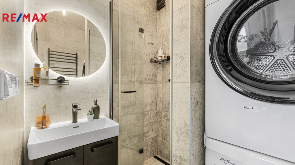 Před dvěma lety prošel kompletní rekonstrukcí. Nové podlahy, podhledy, interiérové dveře, koupelna, samostatné WC i kuchyňská linka. Součástí je klimatizace, která v létě dává smysl právě díky orientaci a vyššímu patru. Navíc byly v celém domě nedávno vyměněny stoupačky.