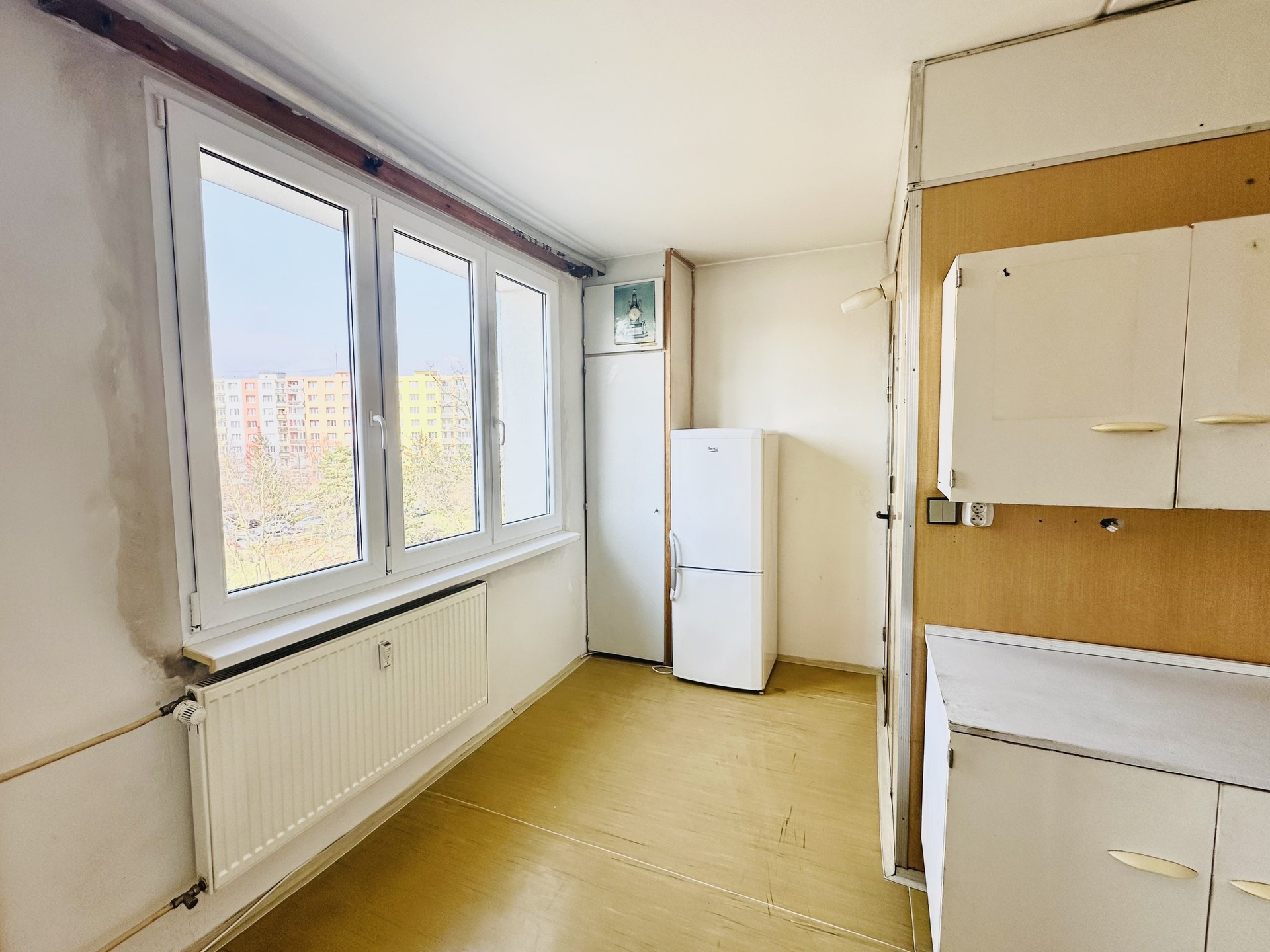 Nabízená nemovitost je ihned k dispozici, je v původním stavu a nachází se ve 4.NP panelového domu, který prošel kompletní revitalizací (proběhlo zateplení fasády s opravou a zasklením lodžií, oprava vnitřních prostor, střechy, výtahu i stoupaček, výměna radiátorů.)