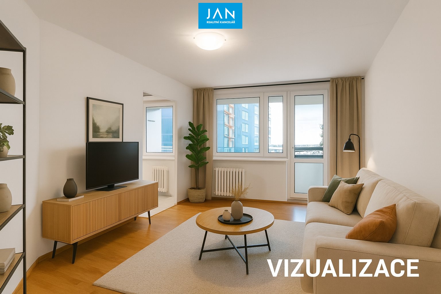 - obývací pokoj se vstupem na prostornou lodžii s výhledem do zeleného vnitrobloku