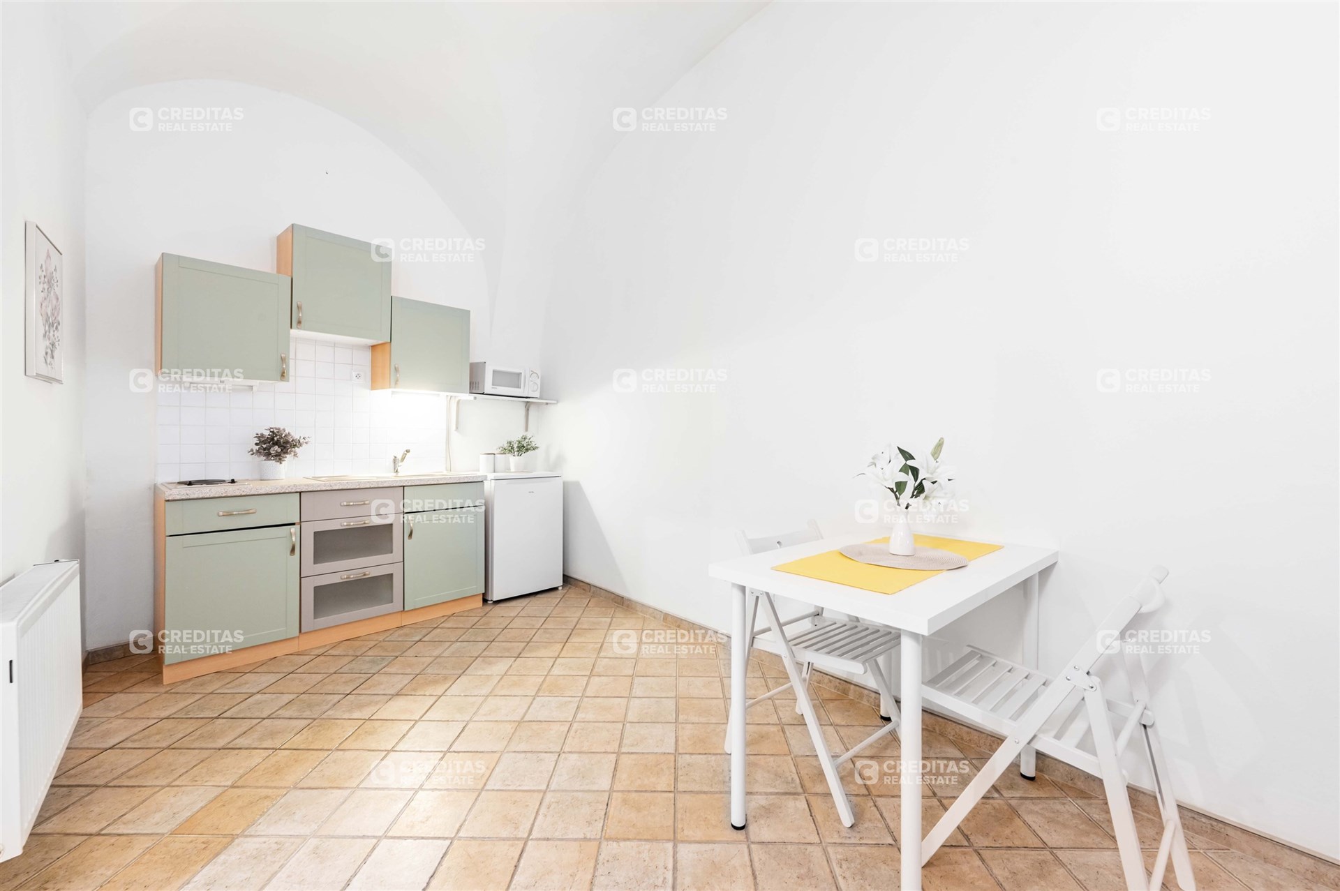 V současné době je jednotka prakticky rozdělena na tři samostatné apartmánové jednotky 1+kk se společnou vstupní chodbou, což umožňuje velmi efektivní pronájem. Dispozici je zároveň možné upravit a vytvořit jeden velkorysý byt vhodný pro komfortní bydlení v historickém centru Prahy.