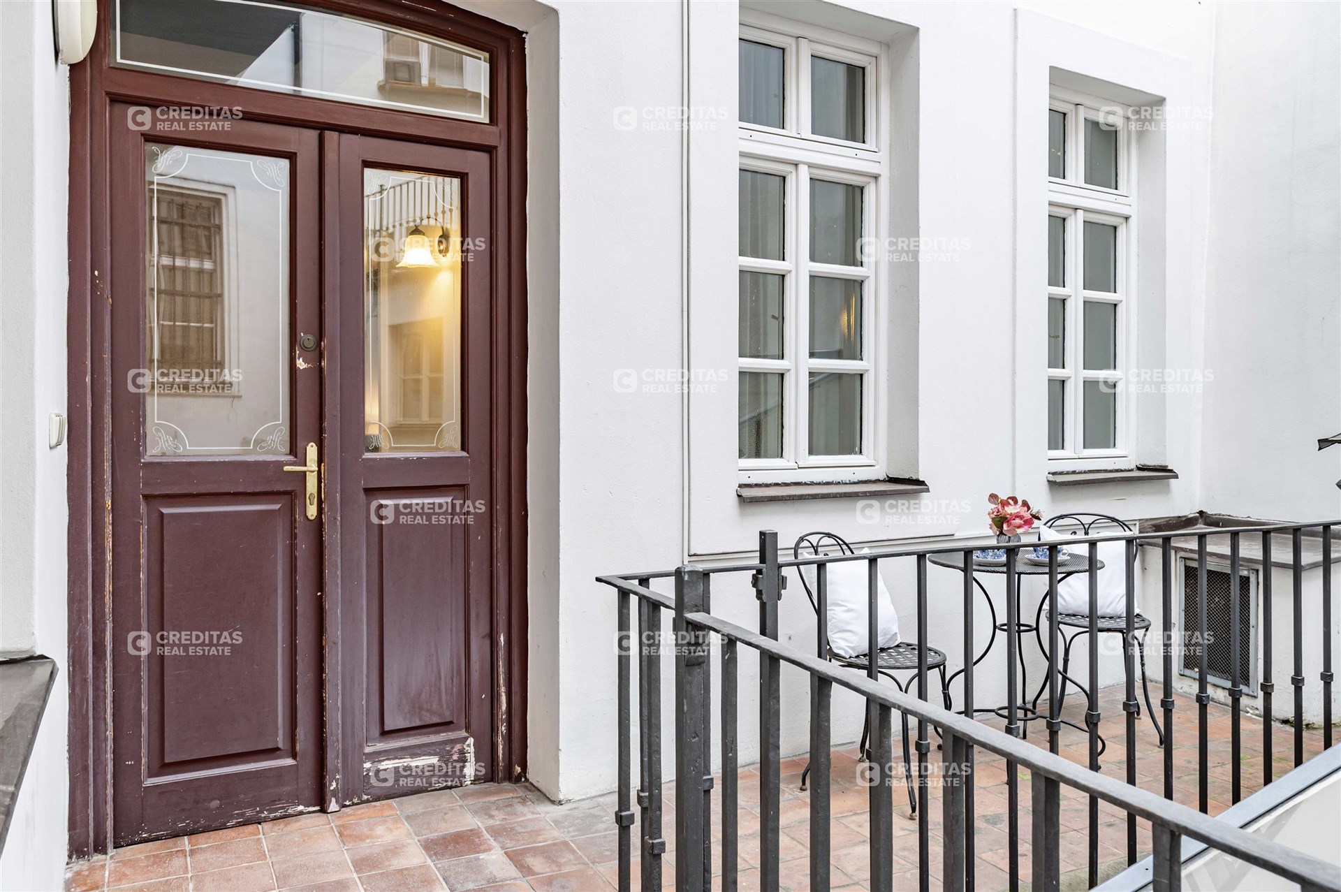 Byt je orientovaný do klidného vnitrobloku a nachází se ve druhém nadzemním podlaží historického pavlačového domu, což zajišťuje příjemné soukromí i přes výjimečnou polohu v samotném centru města.