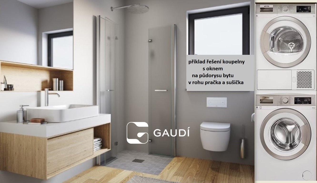 - koupelna cca 4m2 (sprchový kout, umyvadlo, závěsné WC, plynový kotel, místo pro pračku)