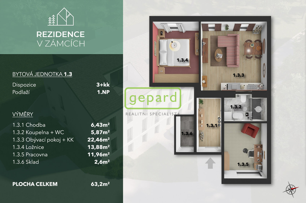| Dispozice/podlahová plocha: | 3+kk/64 m² |