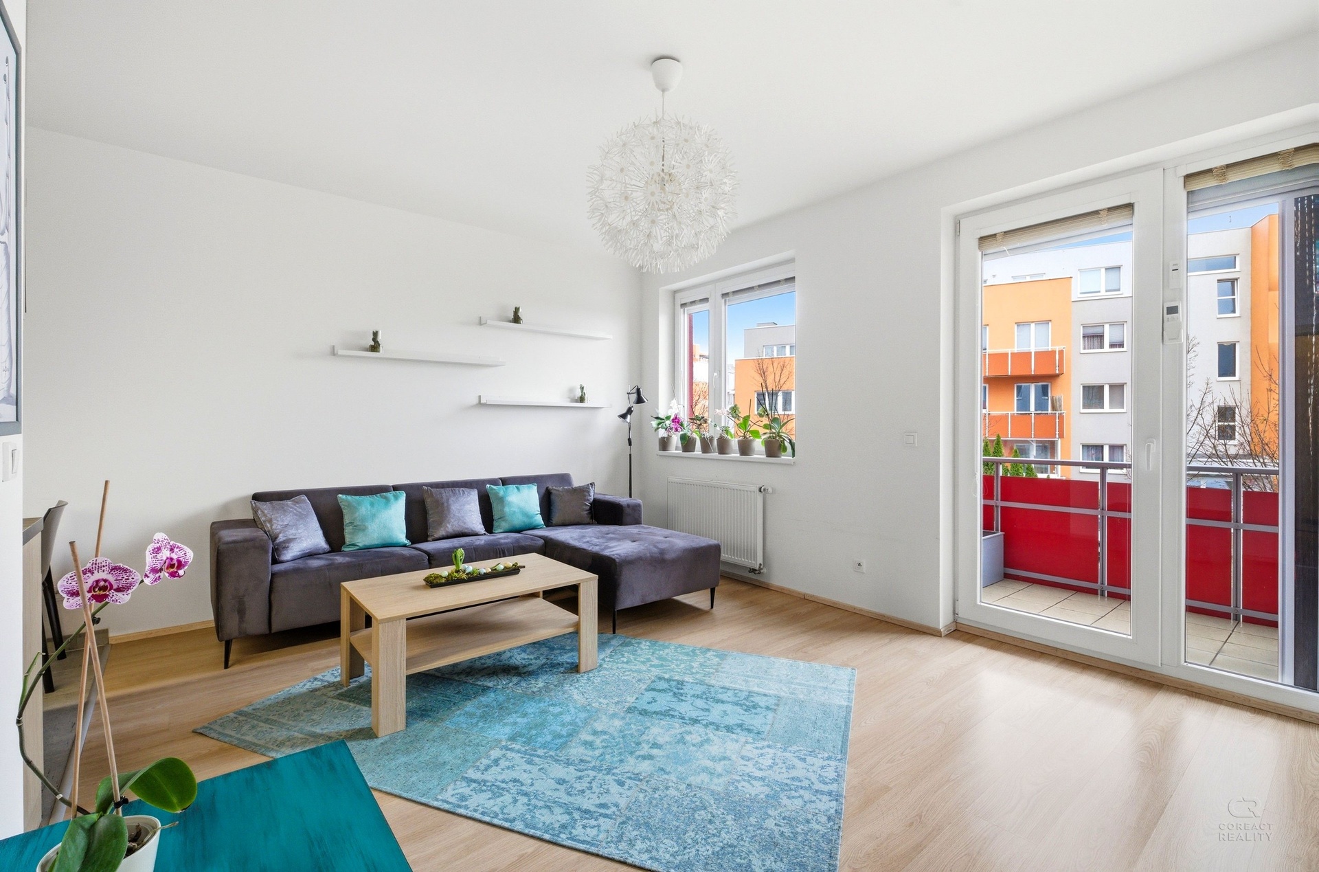 Díky dobré orientaci je byt příjemně prosvětlený po celý den. Kuchyňský kout je vybaven základními spotřebiči a poskytuje dostatek prostoru pro vaření i stolování. Obývací část navazuje na kuchyni a tvoří příjemné centrum bytu. Ložnice jsou