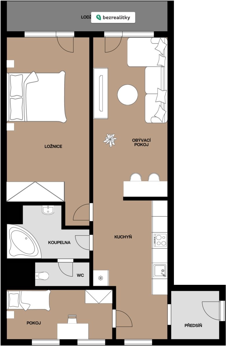 - Dispozice bytu: 3+kk