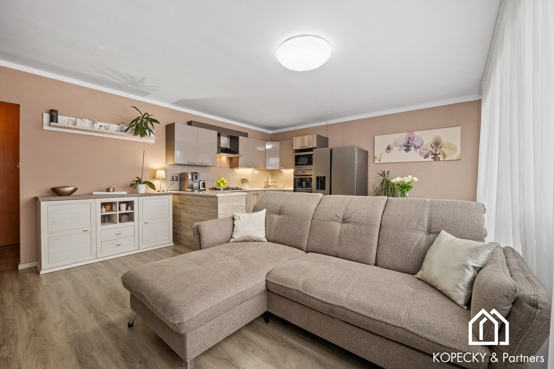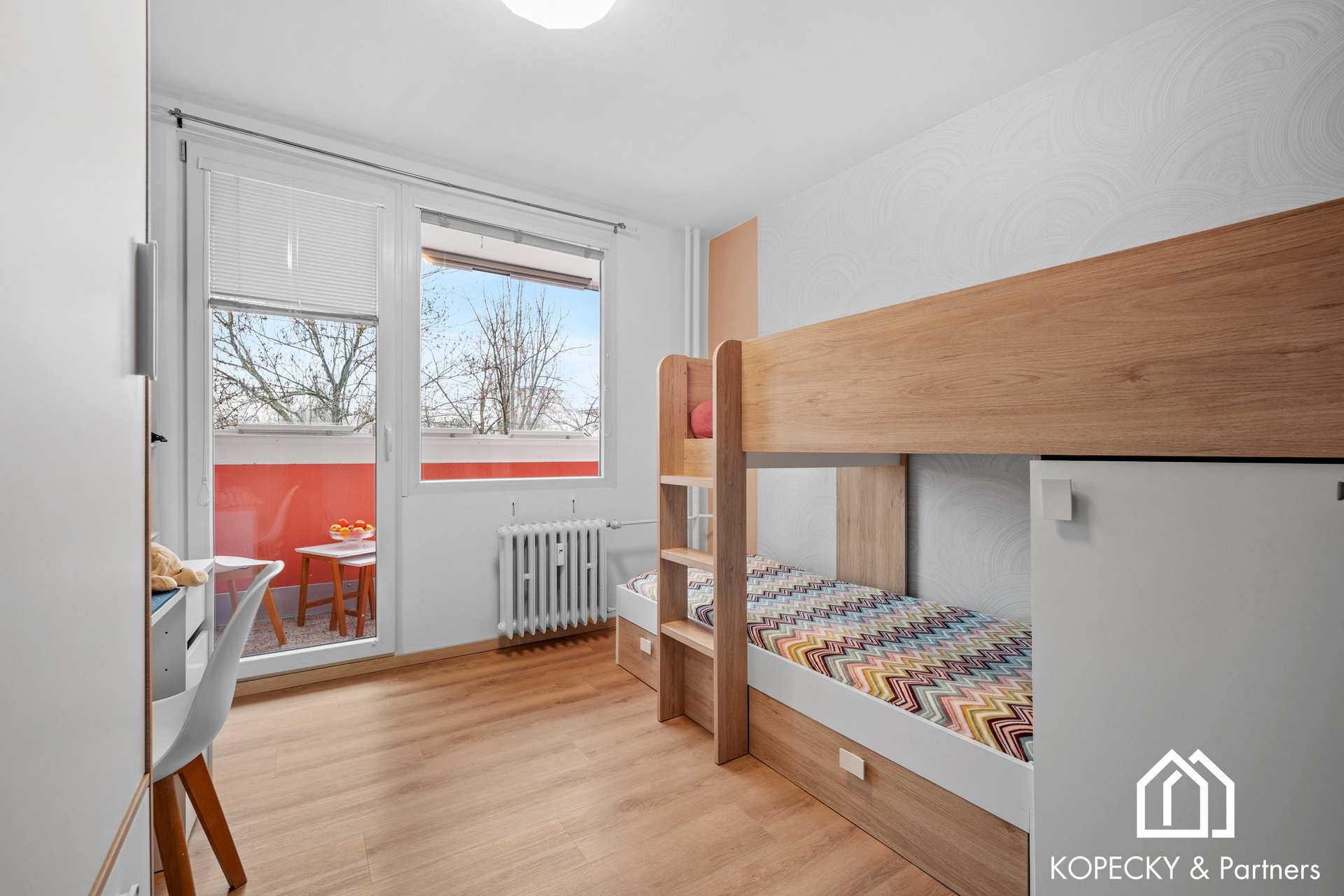 Byt prošel rekonstrukcí v roce 2018, díky čemuž působí moderně, čistě a nadčasově. Dispozice 3+kk je prakticky řešená – obývací část s kuchyňským koutem tvoří přirozené centrum bytu, navazují na ni dva samostatné pokoje, které mohou sloužit jako ložnice a dětský pokoj, případně pracovna. Samozřejmostí je koupelna, samostatné WC a předsíň s prostorem pro vestavné úložné řešení.