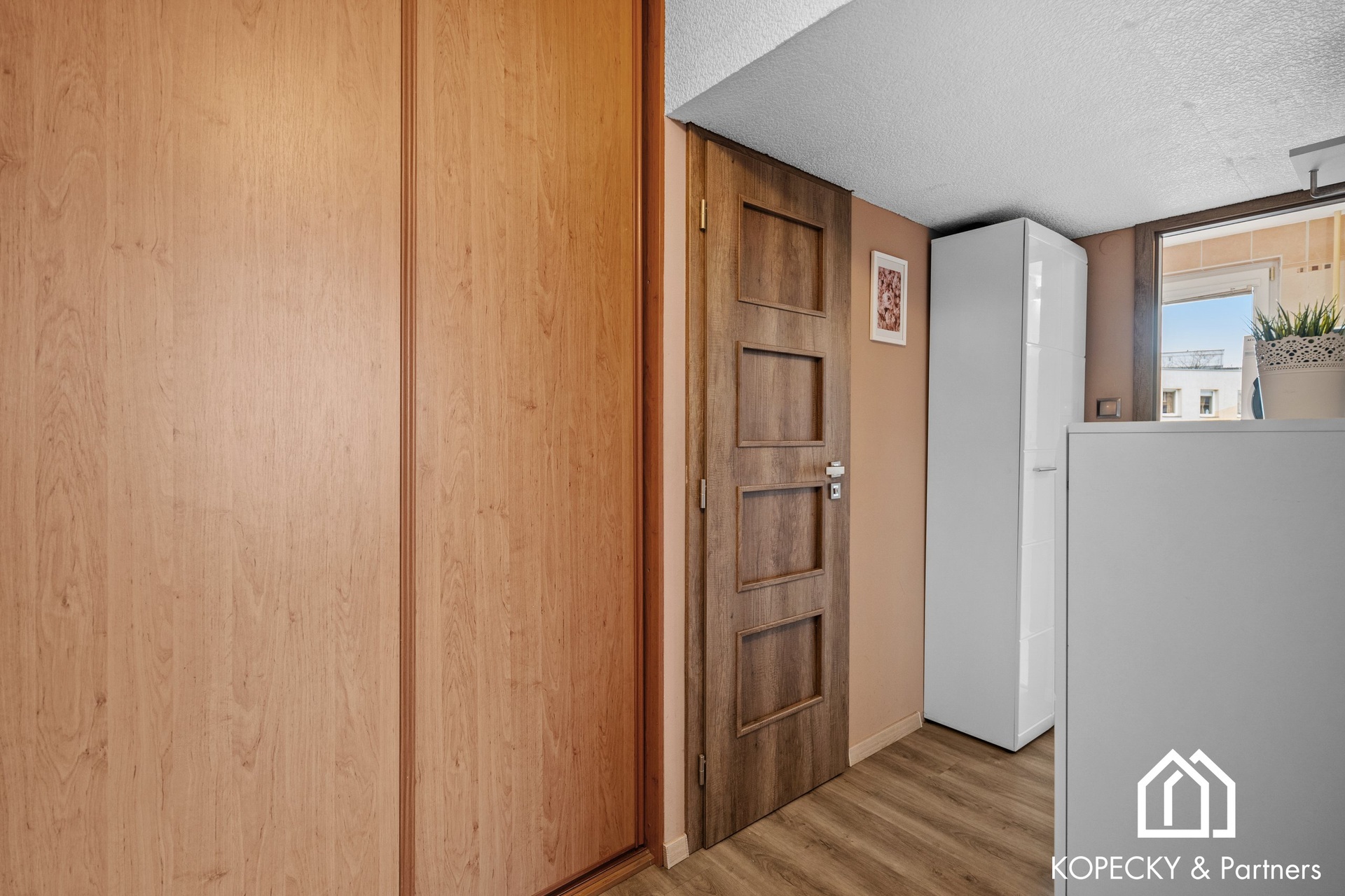 Velkým benefitem je lodžie, která přidává další využitelný prostor – ať už na ranní kávu, bylinky nebo večerní klid. Další praktickou výhodou je komora na patře, kterou v městských bytech oceníte každý den. Bez problému sem uložíte sezónní věci, sportovní vybavení, vysavač, kufry nebo kočárek a byt tak zůstane vzdušný a uklizený.
