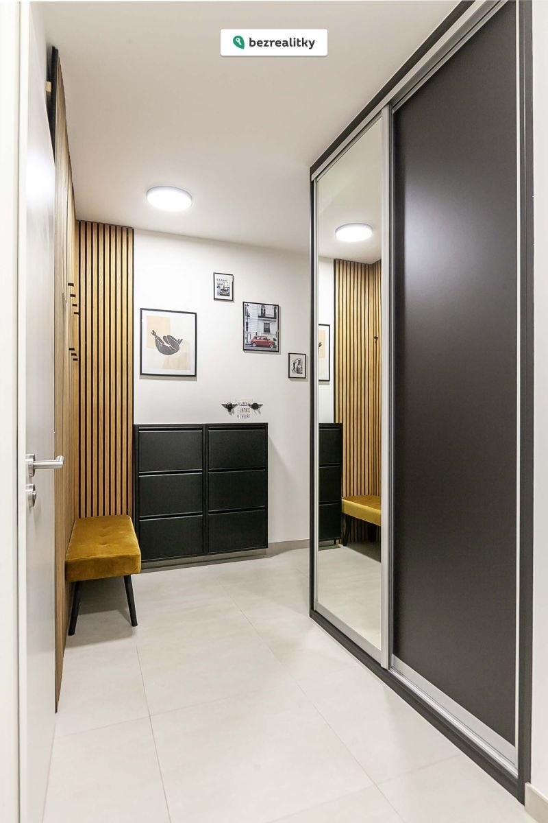 Dispozice bytu chytře odděluje denní a klidovou zónu: prostorný obývací pokoj s kuchyňským koutem se vstupem na terasu a do předzahrádky, dvě samostatné ložnice, koupelna a vstupní část s místem na úložná řešení. Byt se prodává včetně veškerého vybavení. Komfort doplňuje ústřední vytápění, sklep pro sezónní věci a garážové parkovací stání v domě. Energetická náročnost PENB: B – úsporný provoz, nízké náklady.