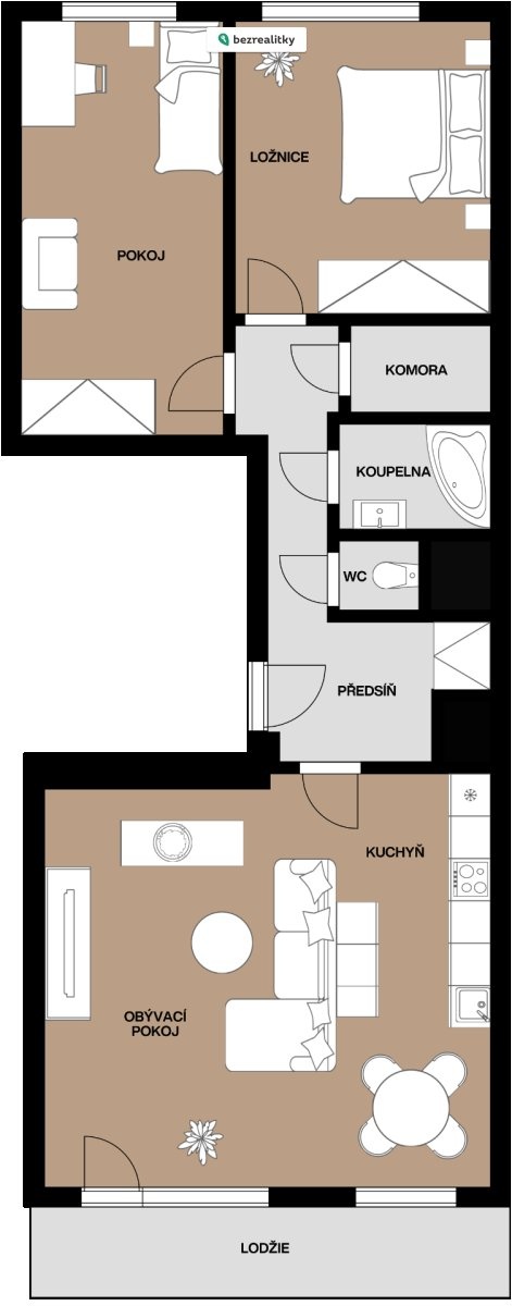 - Dispozice bytu: 3+kk