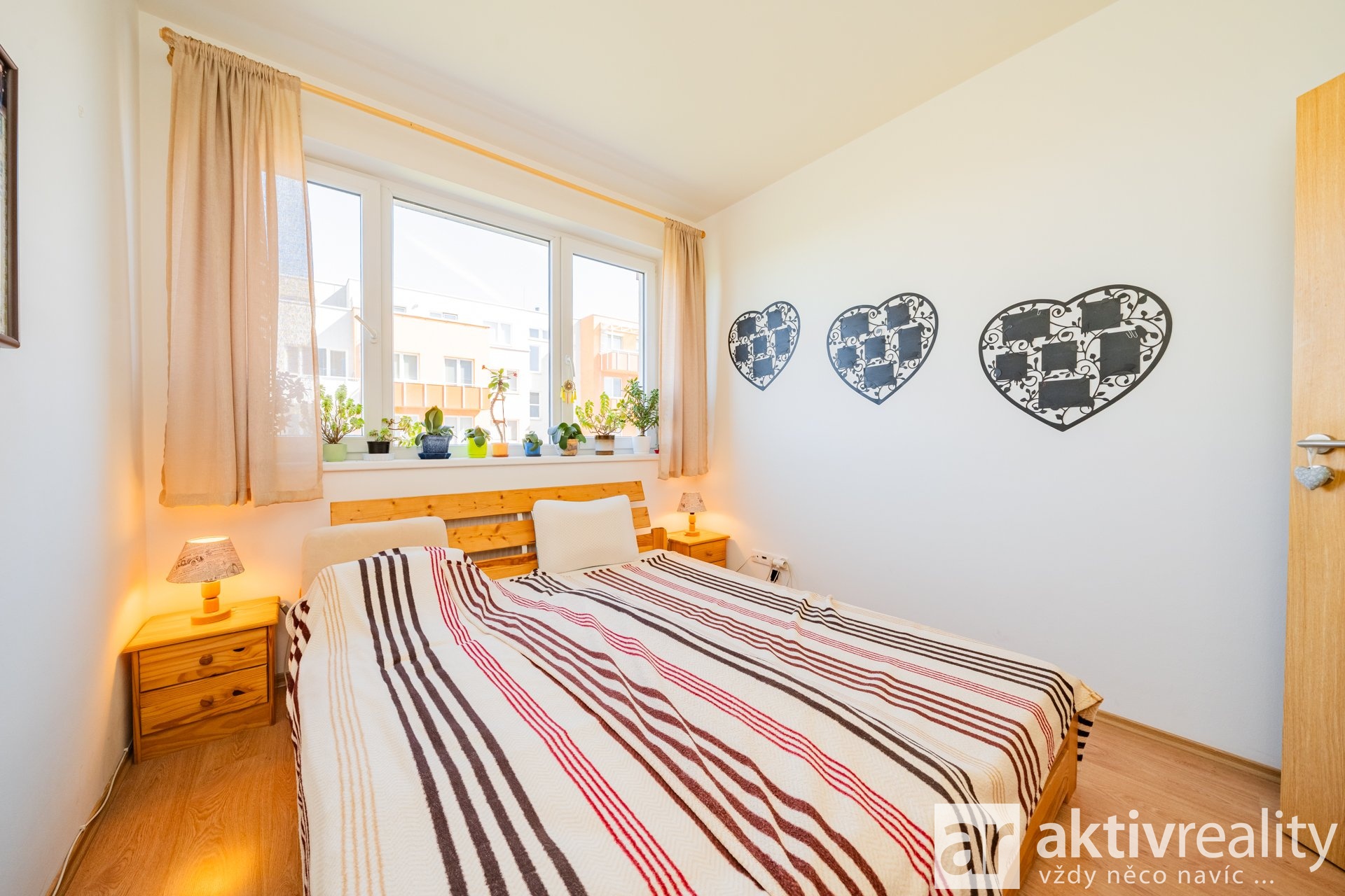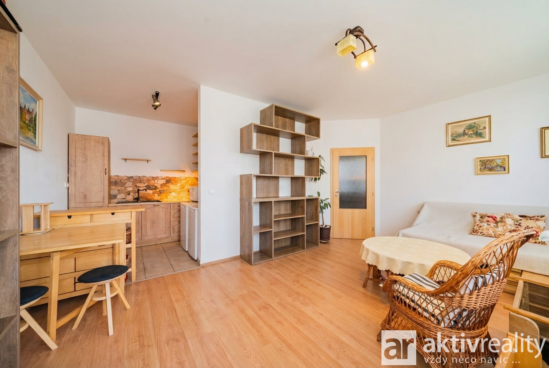 Byt nabízí velmi příjemnou a funkční dispozici, která je ideální jak pro pár, tak i menší rodinu. K dispozici jsou dva samostatné, neprůchozí pokoje o výměrách 9,6 m² a 10,9 m² – jeden je aktuálně využíván jako praktická šatna s velkými vestavěnými skříněmi, druhý slouží jako ložnice. Dominantou bytu je obývací pokoj s kuchyňským koutem o velikosti 25 m², který poskytuje dostatek prostoru pro každodenní život i příjemné posezení s rodinou či přáteli.