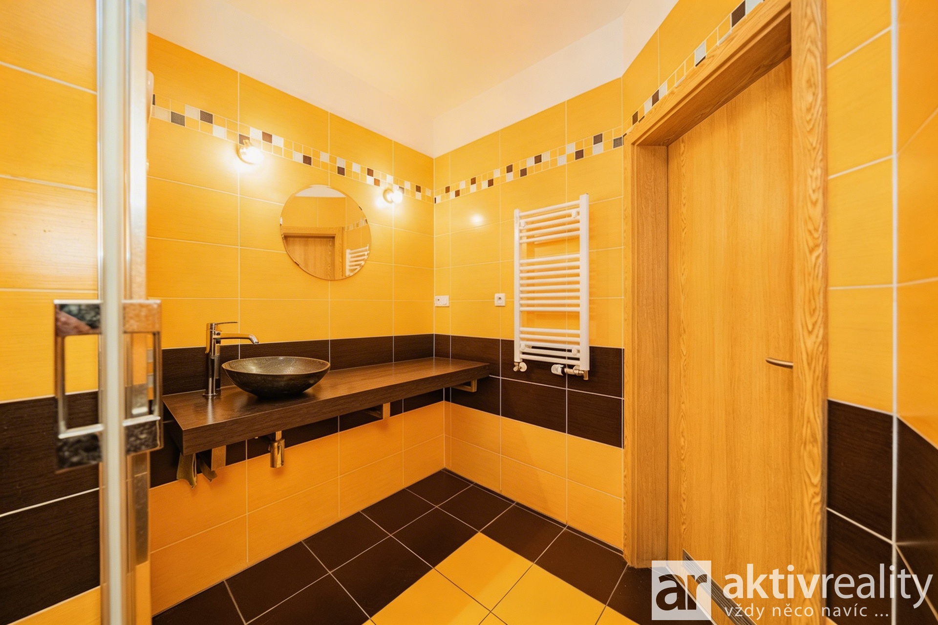 Koupelna je prostorná a nabízí velký sprchový kout a umyvadlo. Toaleta je samostatná a zároveň zde najdete i prostor pro pračku. Podlahy jsou řešeny prakticky – v kuchyni, chodbě, koupelně a na toaletě je dlažba, v obývacím pokoji plovoucí podlaha. Vytápění je řešeno dálkově pomocí radiátorů.