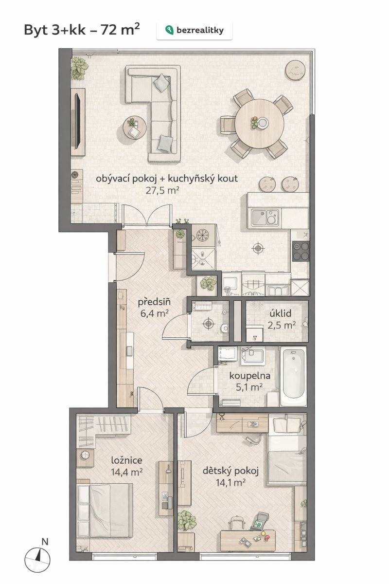 | Dispozice/podlahová plocha: | 3+kk/72 m² |