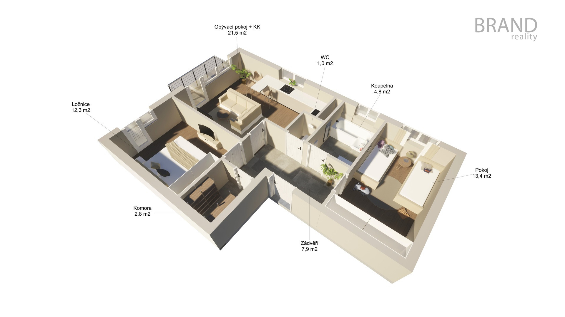 - Dispozice bytu: 3+kk