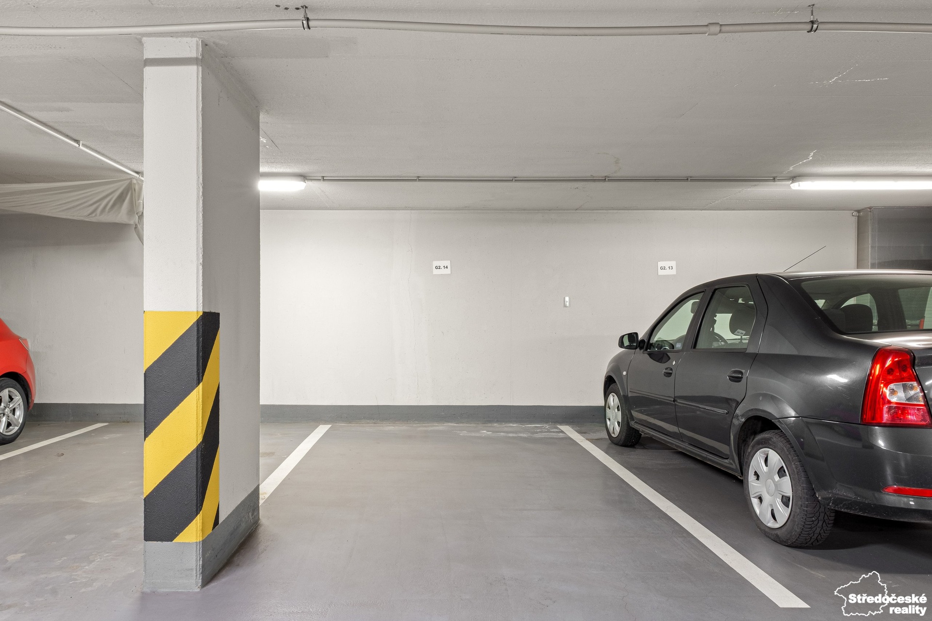 K bytu náleží a v ceně je zahrnuto vyhrazené garážové stání ve druhém podzemním podlaží domu přístupné výtahem. Byt se nachází v prvním nadzemním podlaží.