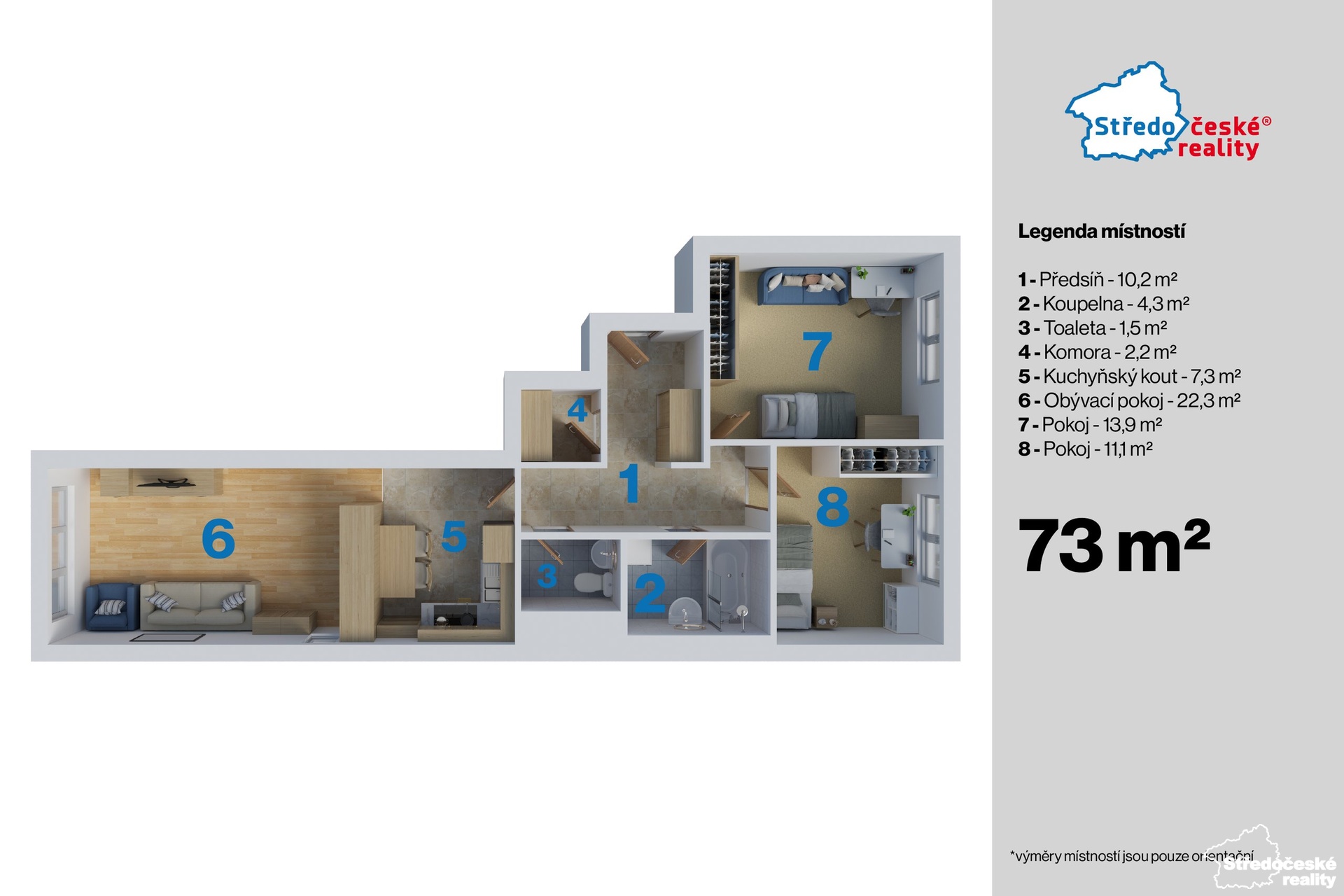| Dispozice/podlahová plocha: | 3+kk/73 m² |