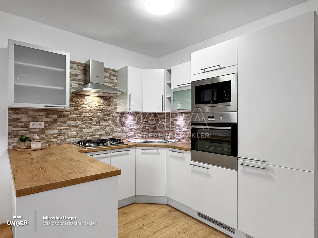 Byt prošel v roce 2015 kompletní a poctivou rekonstrukcí. Nešlo jen o „novou kuchyň a koupelnu“, ale o celkovou přestavbu včetně rozvodů, podlah a všech důležitých detailů. Hned po vstupu je znát kvalita provedení i to, jak se o byt pečovalo. Dispozice je praktická, obývací část s kuchyní tvoří příjemné centrum bytu a lodžie přidává další prostor pro ranní kávu nebo večerní klid.