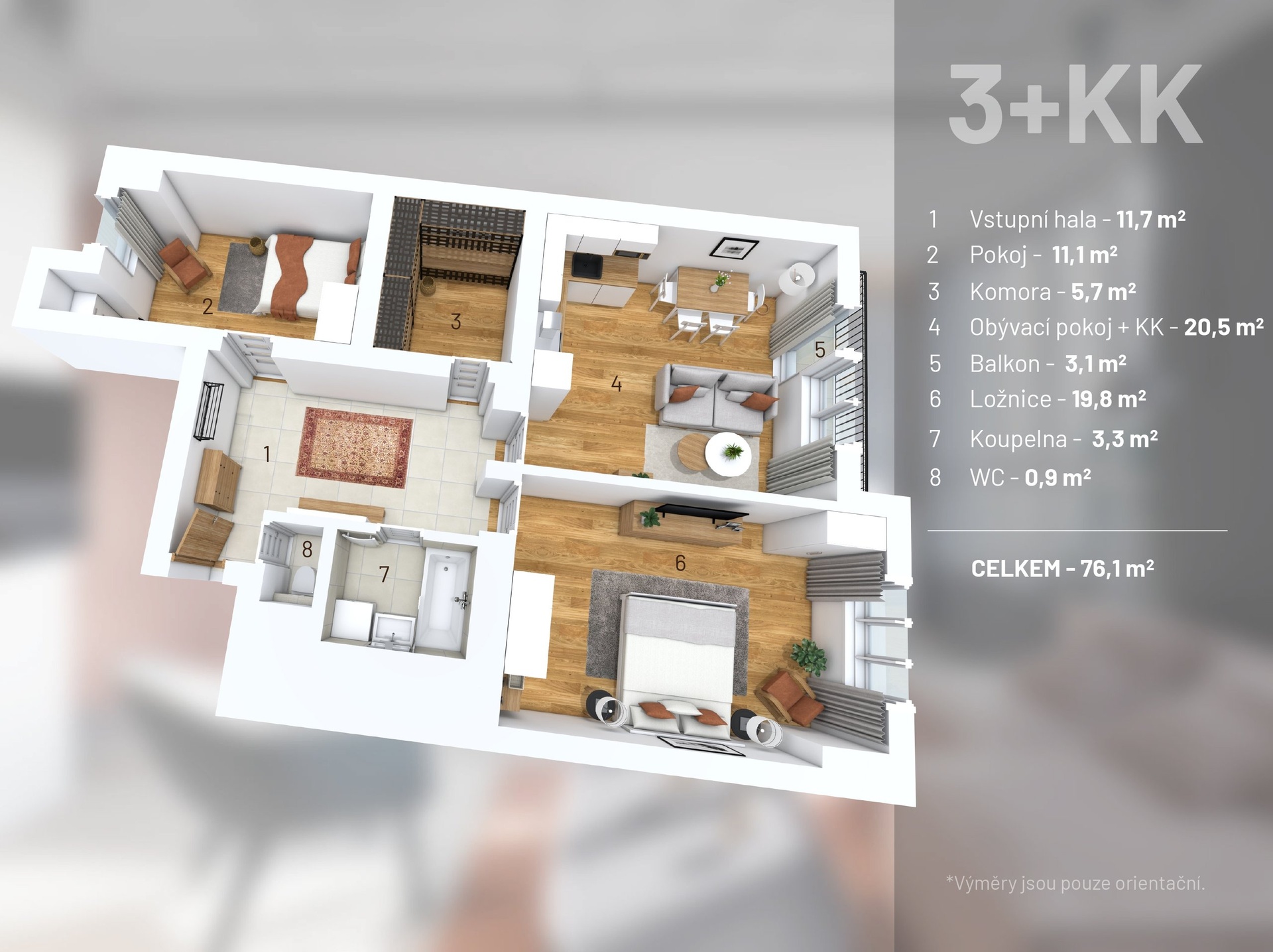 | Dispozice/podlahová plocha: | 3+kk/77 m² |