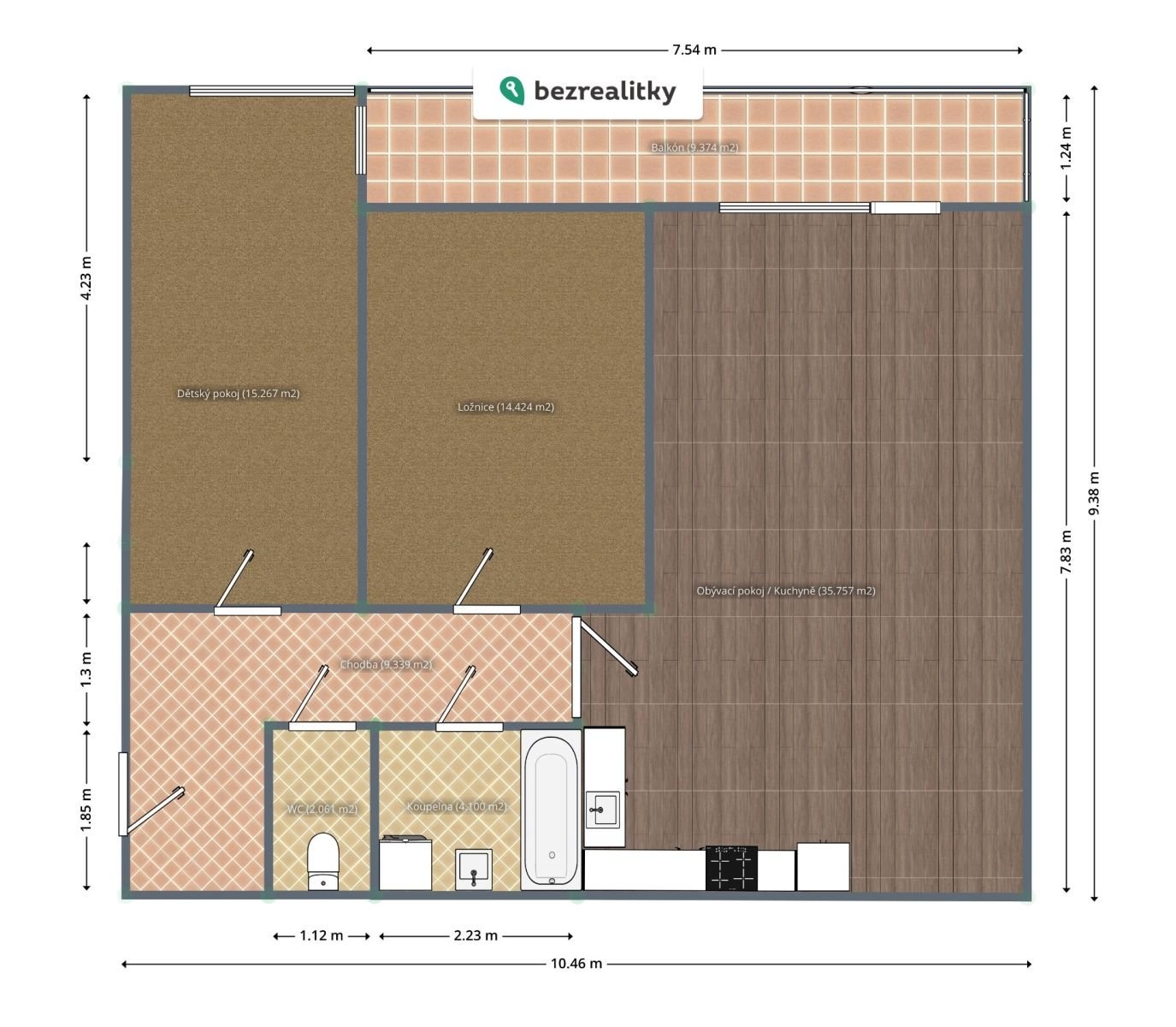 - Dispozice bytu: 3+kk