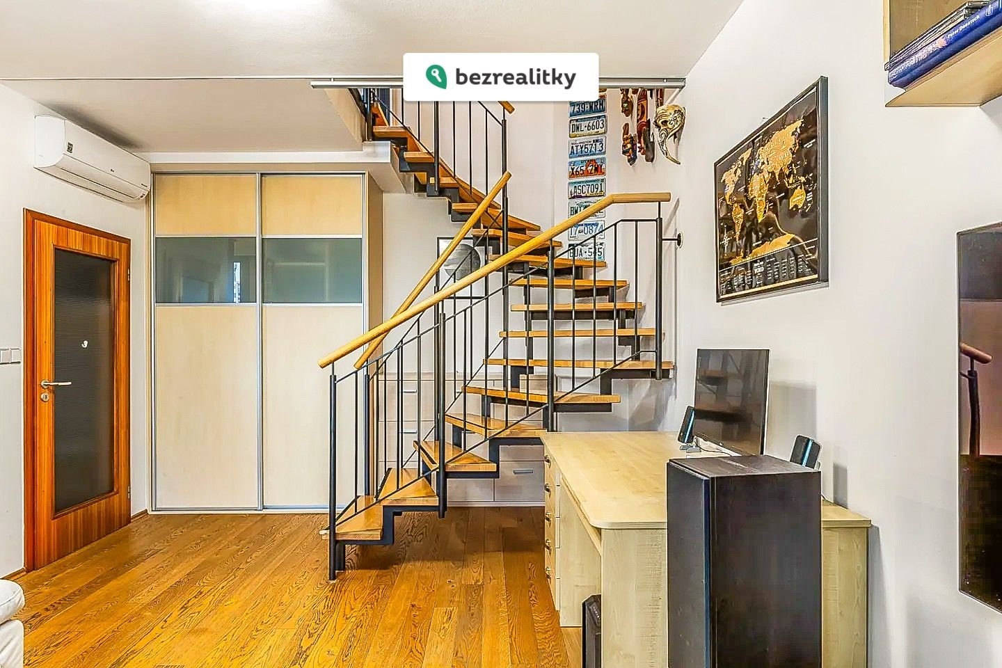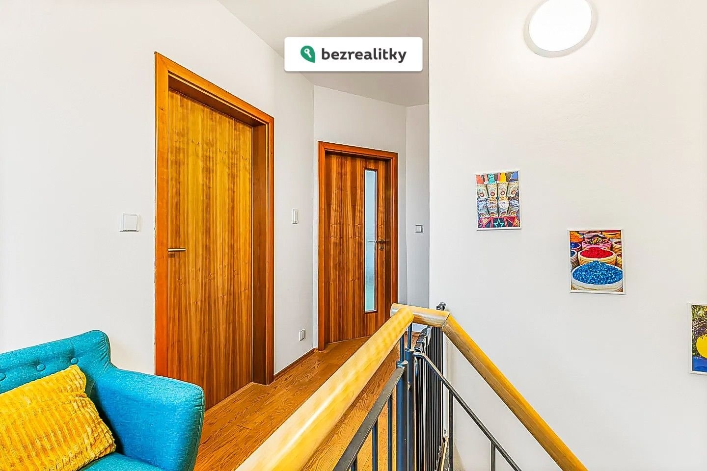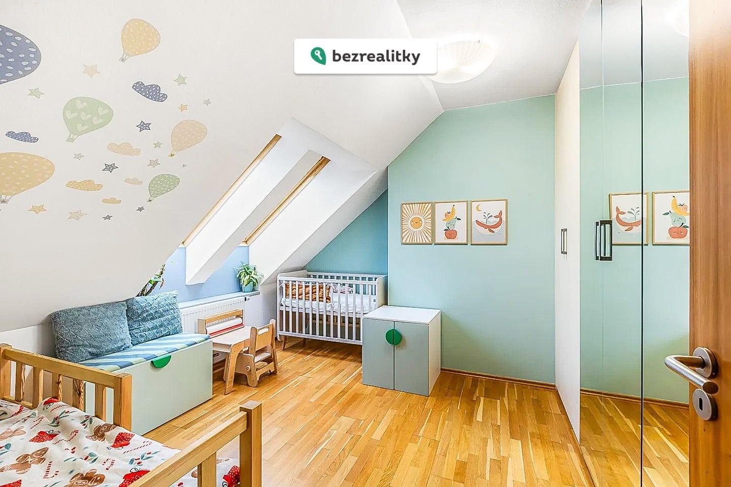 Interiér nabízí kvalitní dřevěné podlahy, vestavěné skříně v každém pokoji a klimatizace ve dvou obytných místnostech. Praktickým benefitem jsou dvě koupelny – v každém patře jedna.