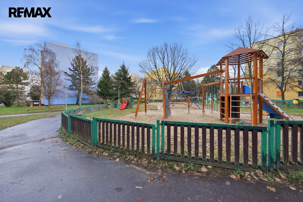 Samotný dům se nachází ve velmi příjemné a klidné lokalitě s parkovou atmosférou. Z jedné strany domu je obslužná komunikace a parkování, z druhé strany pěší zóna a dětské hřiště, což ocení zejména rodiny s dětmi i ti, kdo hledají klidné bydlení bez zbytečného ruchu. V okolí je veškerá občanská vybavenost v pohodlné docházkové vzdálenosti — obchody, služby, škola, školka i volnočasové zázemí. Příjemným bonusem je také lesopark Milíčovský háj, kam dojdete přibližně za 5 minut pěšky.